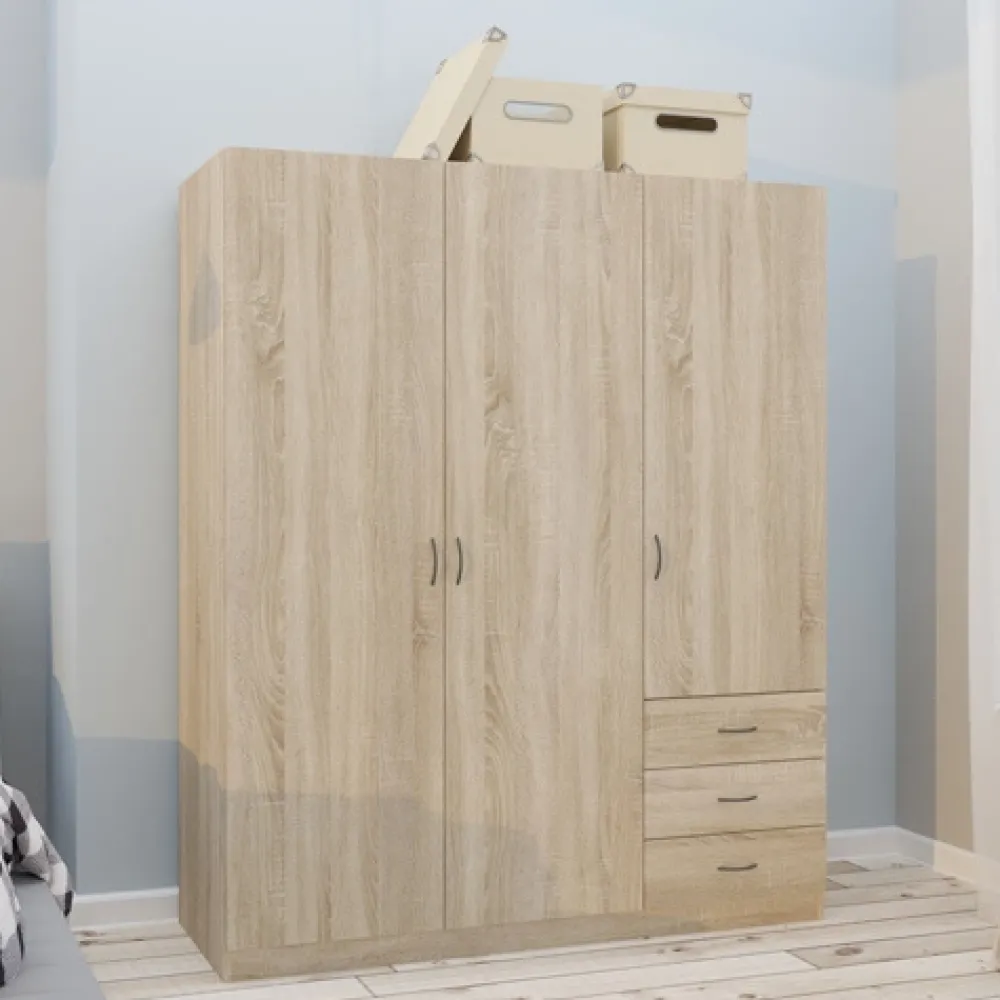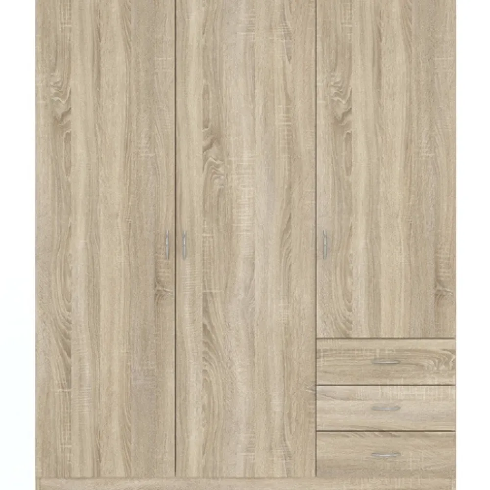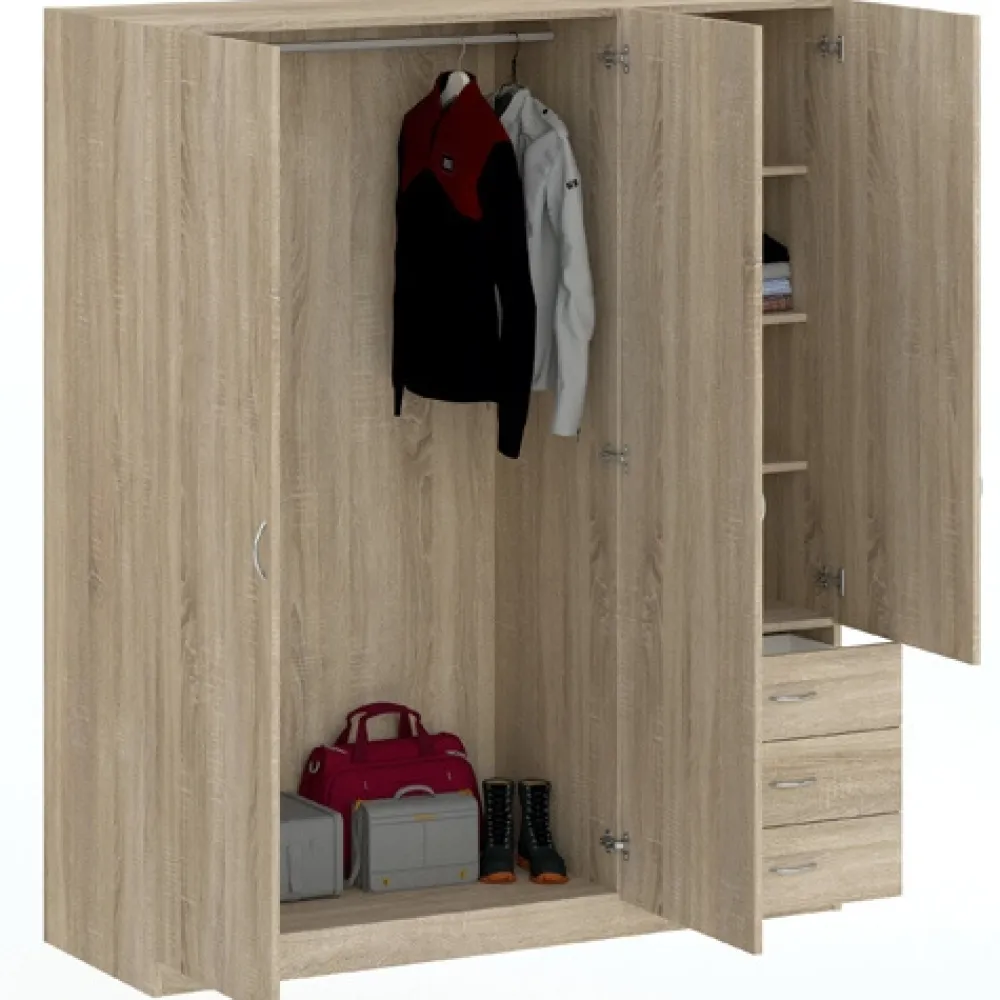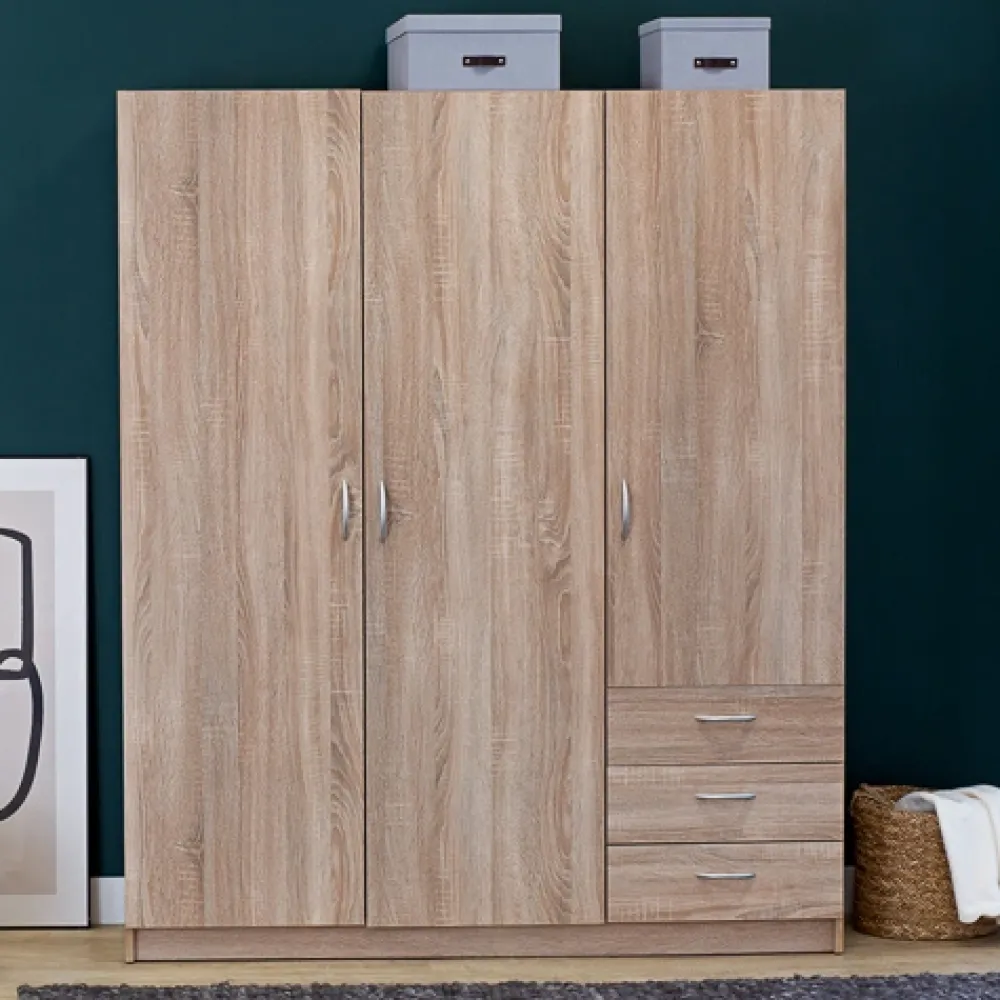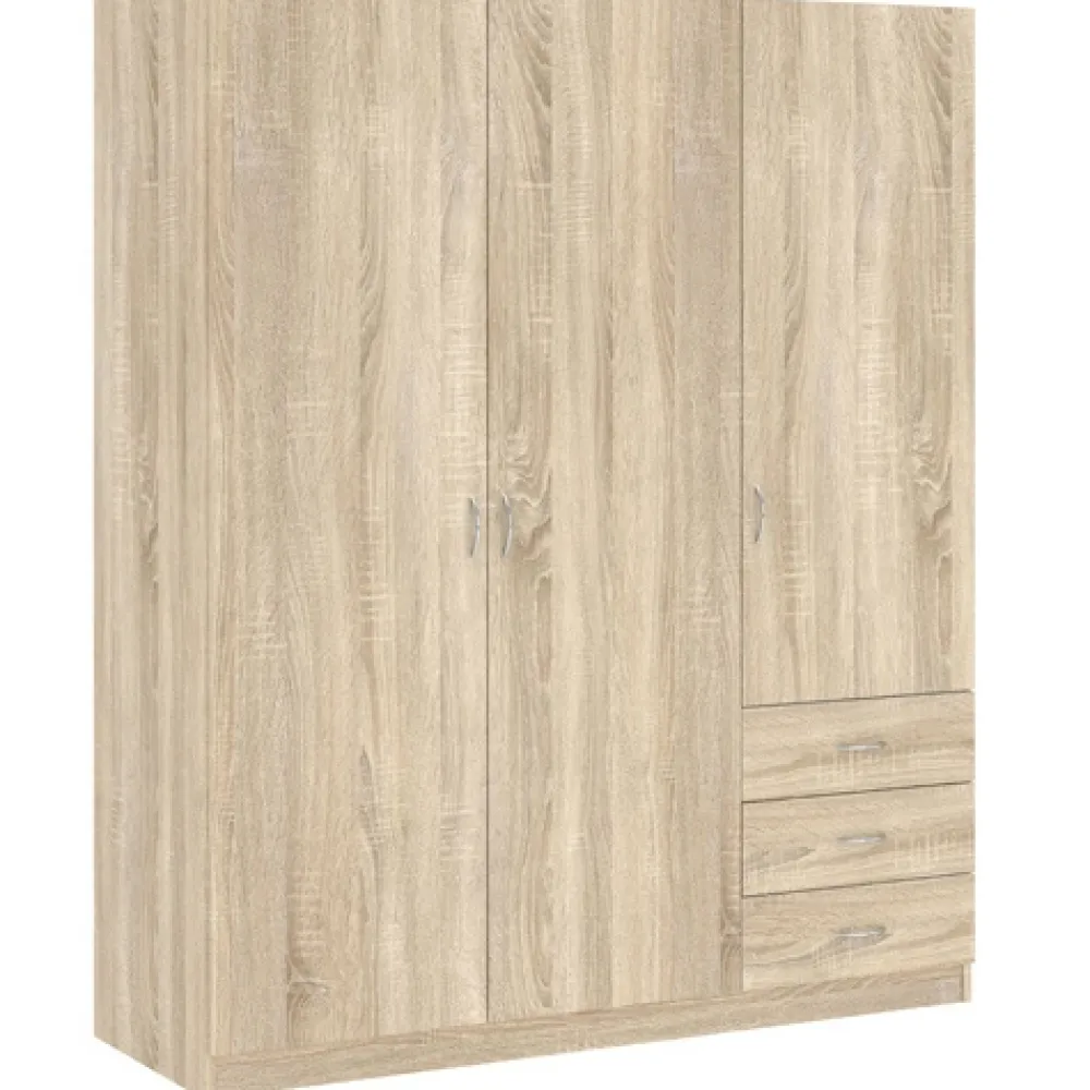 - Trzydrzwiowa szafa GENTIO w dekorze dąb sonoma to idealne połączenie stylu i funkcjonalności. Zawiera 4 półki i 3 szuflady na prowadnicach kulkowych. Kompaktowe wymiary sprawdzą się także w mniejszych sypialniach.