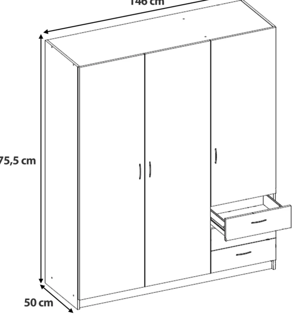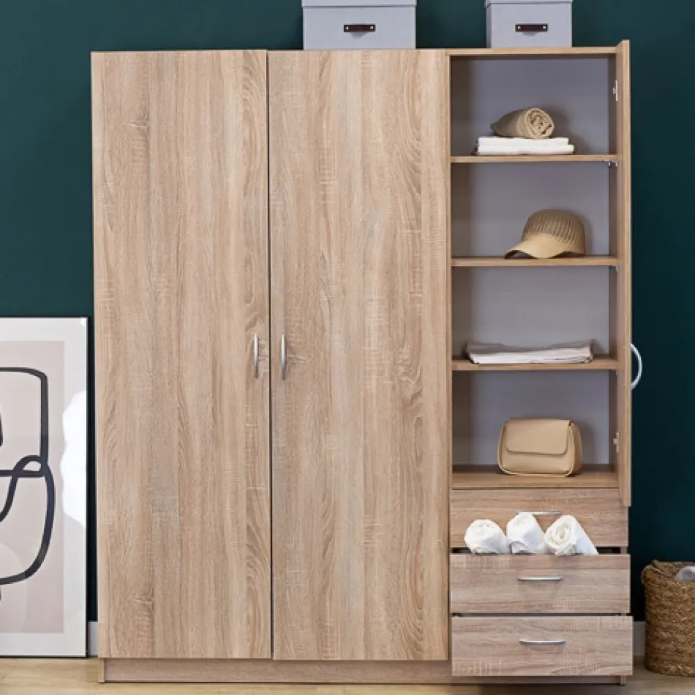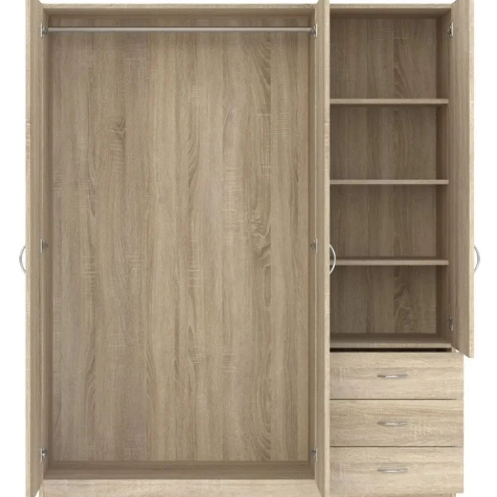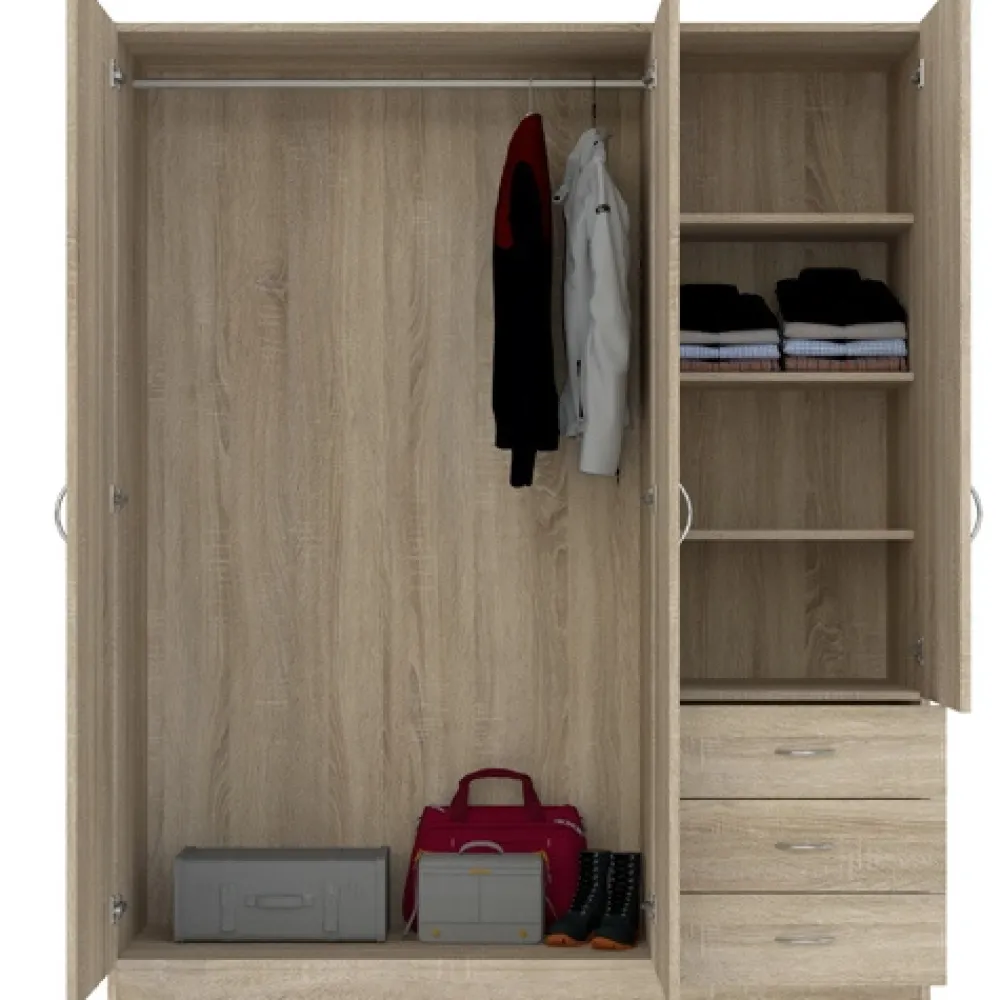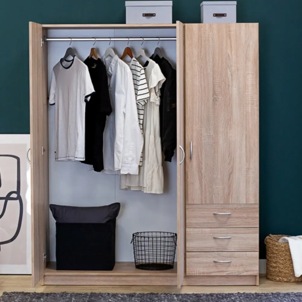 - Trzydrzwiowa szafa GENTIO w dekorze dąb sonoma to idealne połączenie stylu i funkcjonalności. Zawiera 4 półki i 3 szuflady na prowadnicach kulkowych. Kompaktowe wymiary sprawdzą się także w mniejszych sypialniach.