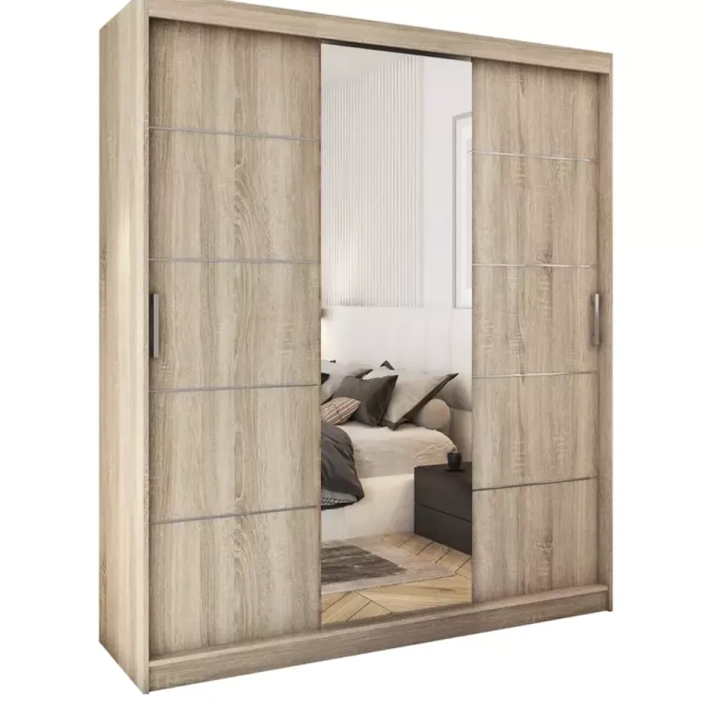 - Szafa na środku ma lustro, a na bocznych drzwiach listwy ozdobne do samodzielnego montażu.