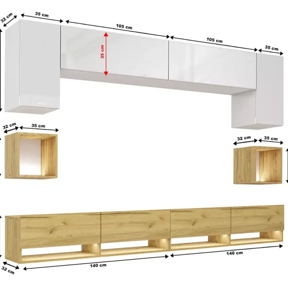 - Oświetlenie LED – Szafki posiadają możliwość doposażenia w dedykowane oświetlenie LED, które znajduje się w zakładce „Kup razem” pod galerią zdjęć. Aby wyposażyć meble w dedykowane oświetlenie LED, prosimy dodać do koszyka zestaw dwóch oraz czterech lampek podszafkowych.