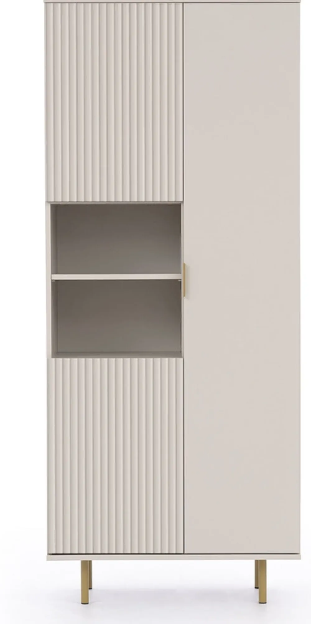 Regał posiada troje drzwi, z których dwoje – z wyjątkowym ryflowanym wzorem – wyposażone zostało w innowacyjny system otwierania push to open. Funkcja ta eliminuje potrzebę używania uchwytów oraz utrzymuje minimalistyczny i nowoczesny wygląd frontów.