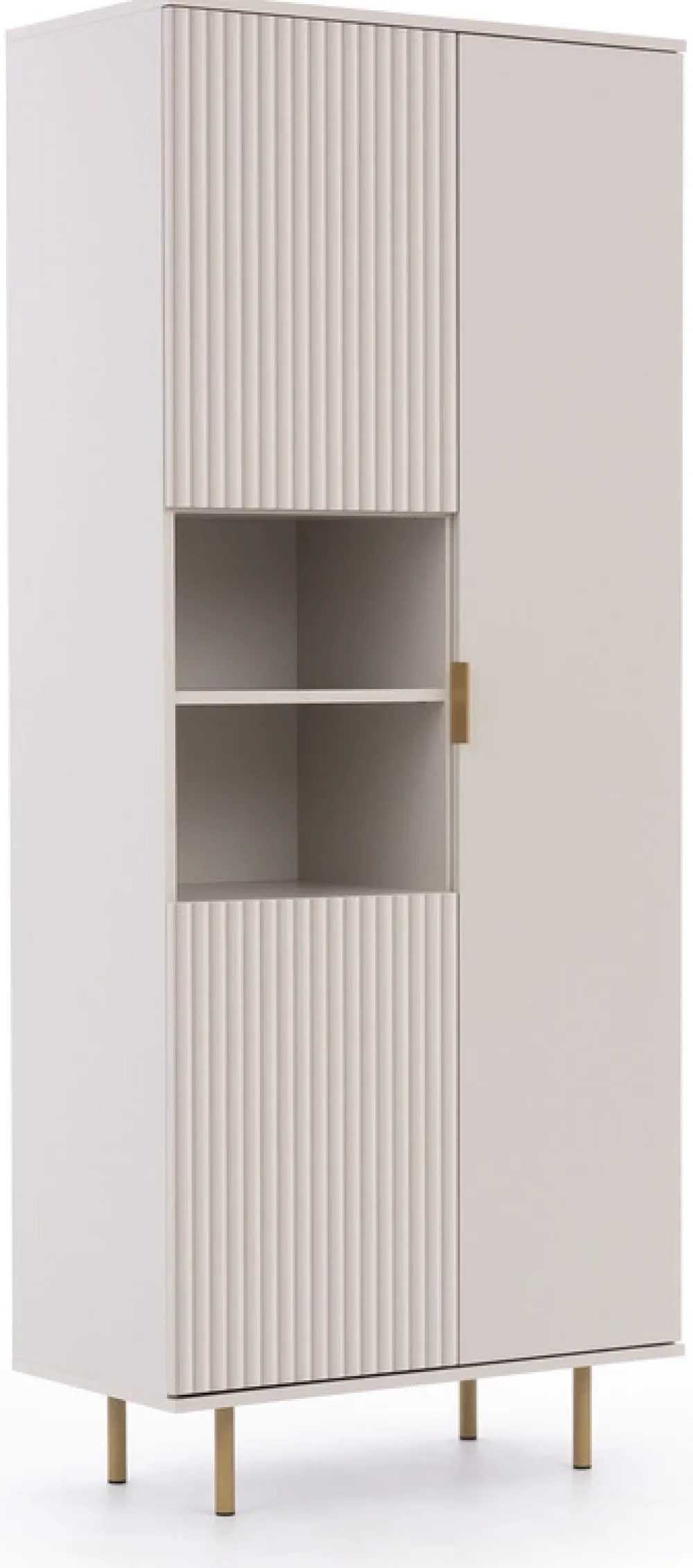 Zamykany regał z półkami NAMASTE łączy w sobie praktyczność i elegancję. Wykonany został z wysokiej jakości płyty laminowanej w subtelnym kolorze kaszmiru. Doskonale wkomponuje się zarówno w nowoczesne jak i te bardziej klasyczne aranżacje, dodając im ciepła i wyrafinowania.