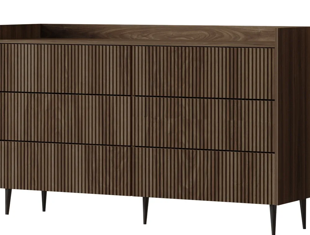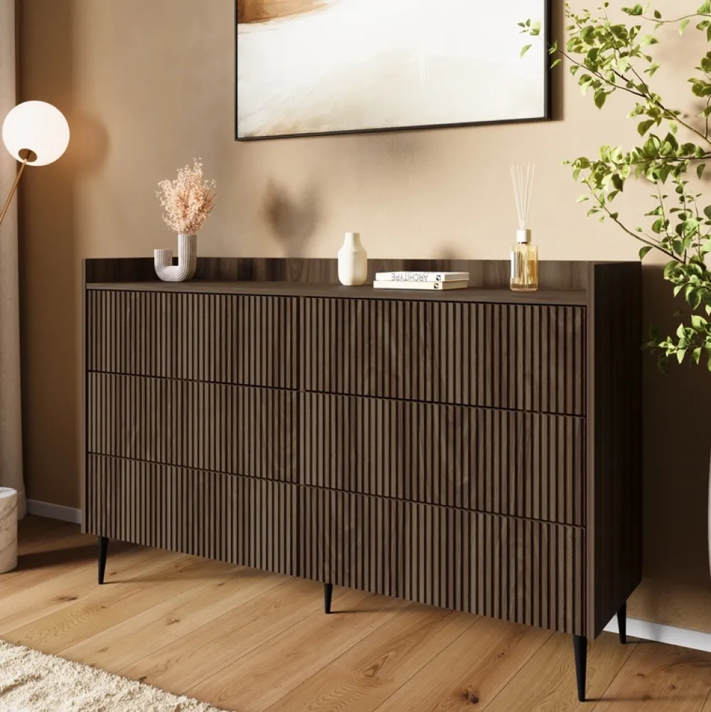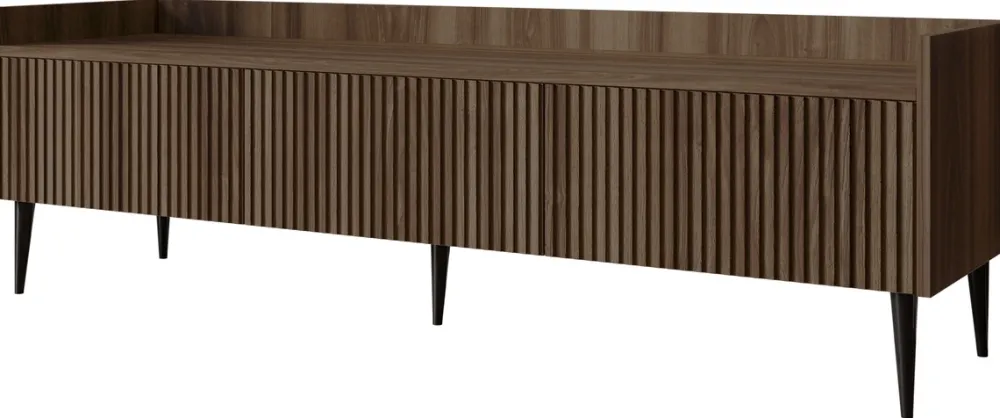 Zestaw mebli do salonu ASPERO to kompleksowe rozwiązanie dla osób, które cenią nowoczesny styl, wygodę i praktyczne przechowywanie. Ryflowane fronty z płyty MDF 18 mm w połączeniu z wysokimi, czarnymi metalowymi nóżkami tworzą spójną, estetyczną całość. Dwie komody, regał, szafka RTV oraz stolik kawowy pozwalają na swobodne zaaranżowanie każdego salonu – niezależnie od jego wielkości.