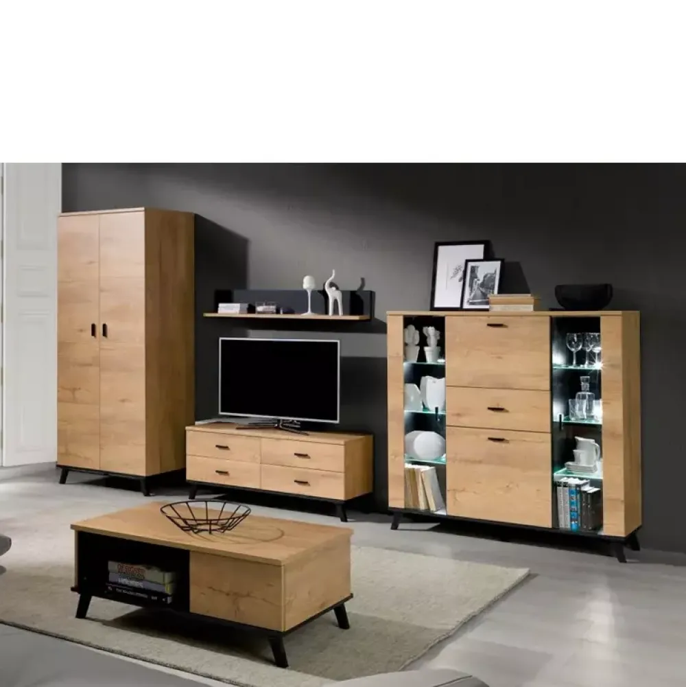 Minimalizm to pierwsze co przychodzi na myśl o nowoczesnych meblach do salonu. Kolekcja JOHNY to połączenie funkcjonalności i eleganckiej formy z prostotą, więc swoje miejsce powinna odnaleźć we wnętrzu tropiciela trendów. W kolekcji tych ponadczasowych mebli systemowych znajdują się bryły, które pomogą Ci uporządkować wszystkie potrzebne przedmioty; duża szafa, witryny szklane, barki, szafki RTV, półki wiszące oraz stoliki kawowe. Elementy wykonywane są z wysokiej jakości płyty laminowanej, której odcień wprowadzi do wnętrza salonu ciepły i nastrojowy klimat.