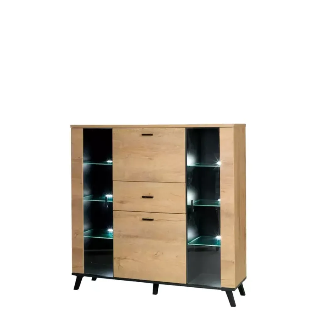 - Kolor: Dąb lefkas jasny + czarne wnętrze, uchwyty i stopki