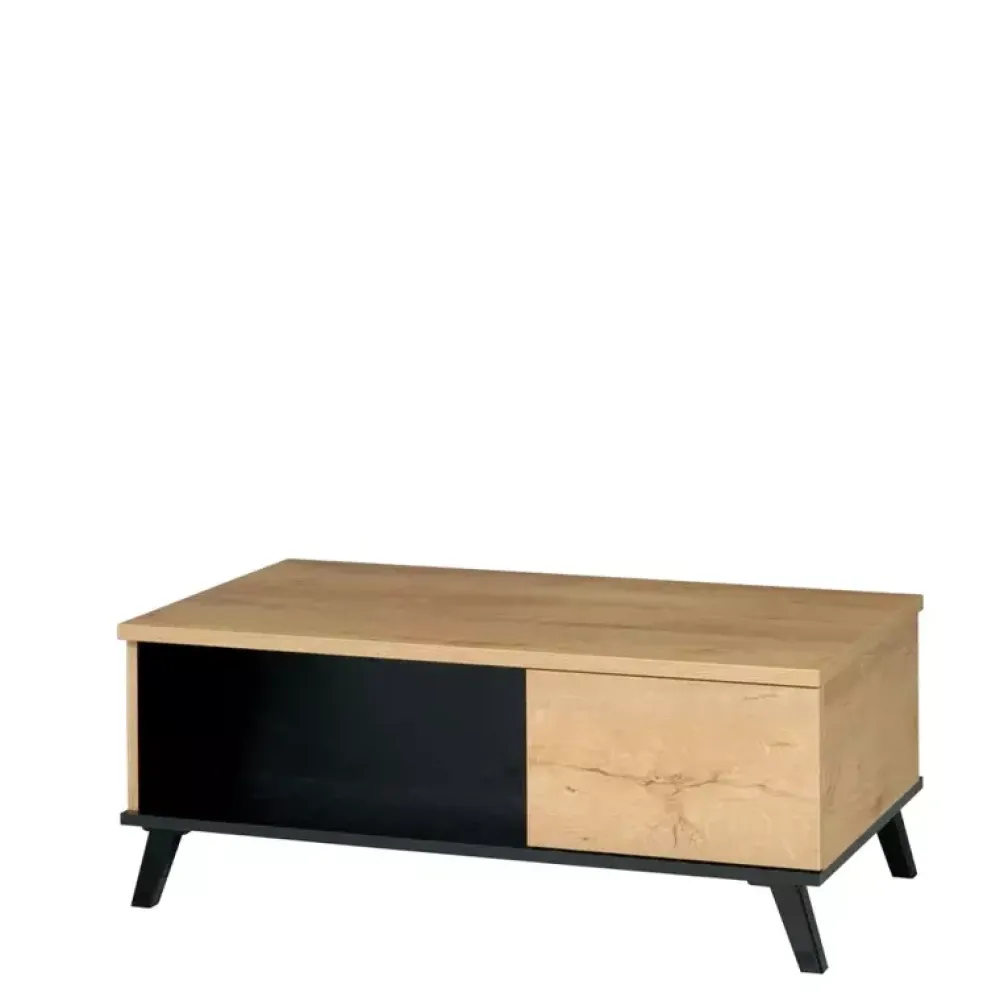 szer. 120 cm, wys. 20 cm, gł. 18 cm - Stolik kawowy wyposażony w dwa schowki, uchylane do dołu;