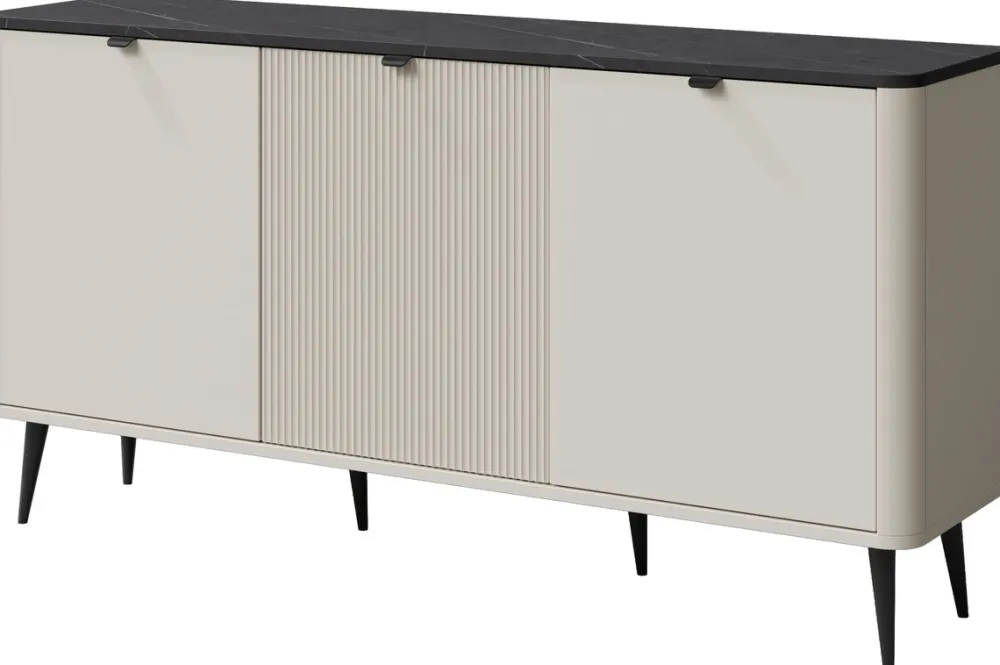 Ta komoda do salonu to połączenie elegancji i praktycznego podejścia do przechowywania. Trzydrzwiowa konstrukcja oferuje sporo miejsca na uporządkowanie domowych przedmiotów, a dekoracyjny, frezowany front środkowy nadaje całości wyjątkowego charakteru. To mebel, który doskonale odnajdzie się w nowoczesnych i klasycznych aranżacjach.