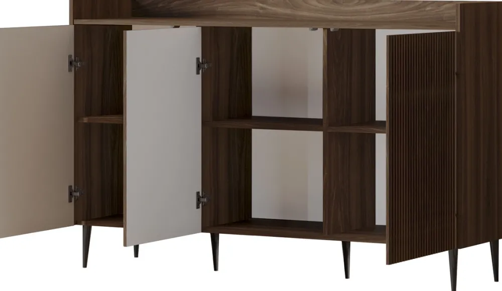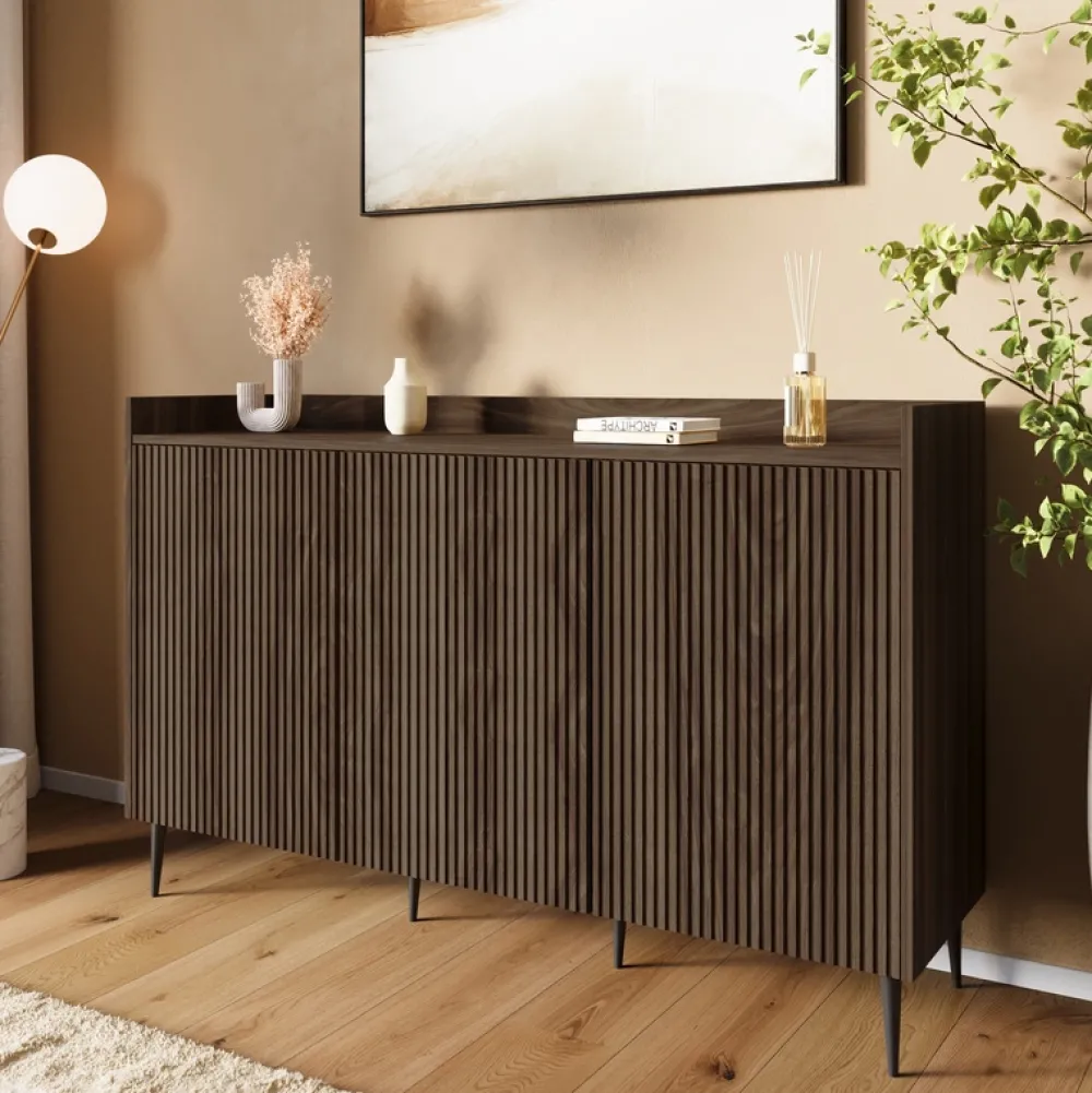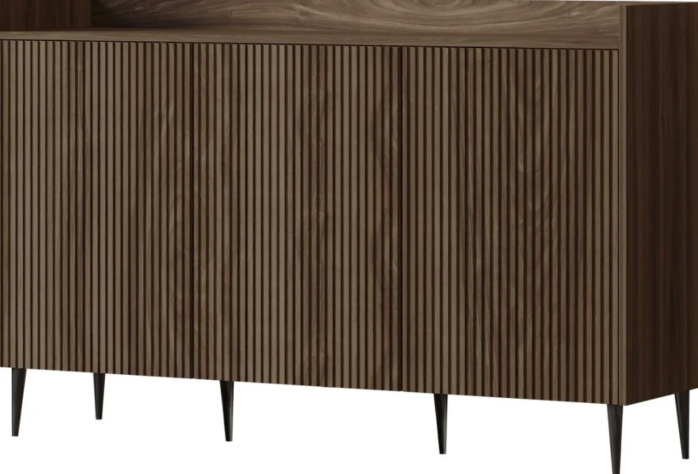 Zestaw mebli do salonu ASPERO to idealna propozycja dla miłośników współczesnego designu i praktycznych rozwiązań. Ryflowane fronty z płyty MDF nadają zestawowi wyjątkowego charakteru, a wysokie, czarne metalowe nóżki dodają mu lekkości i nowoczesnego stylu. To komplet, który odmieni każde wnętrze, oferując nie tylko estetykę, ale i wygodę codziennego użytkowania.