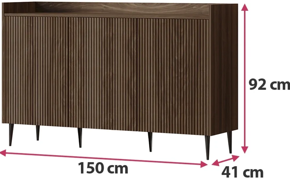 - Wymiary komody: szerokość 150 cm, trzydrzwiowa