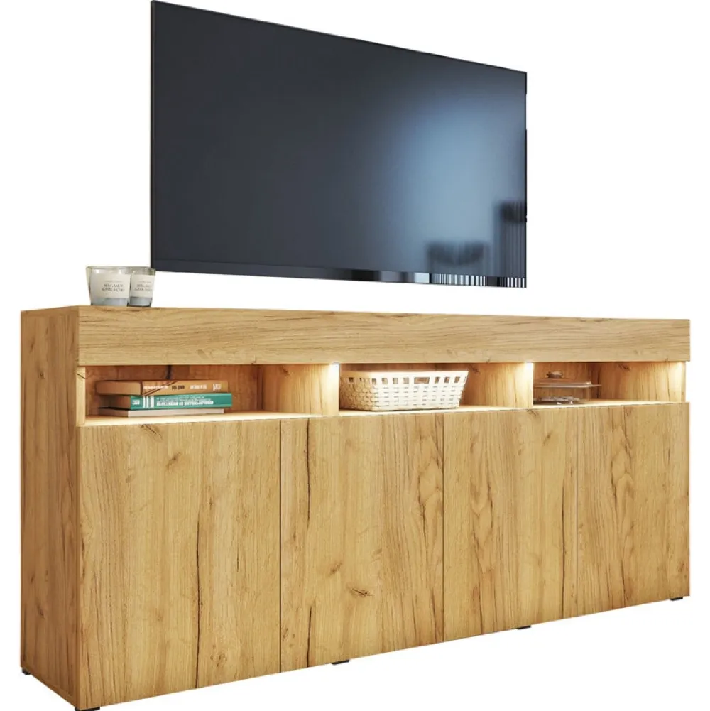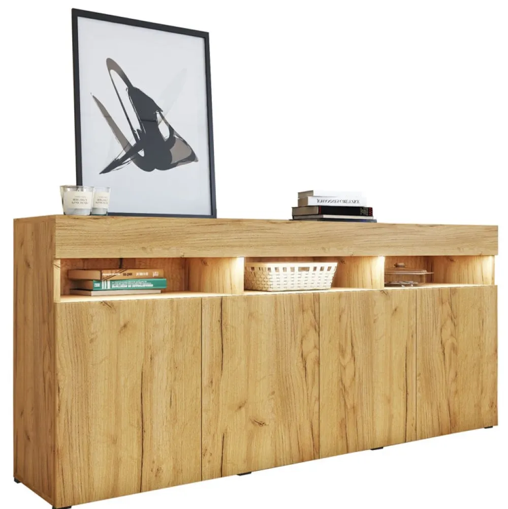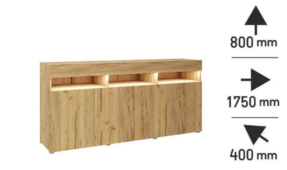 - Oświetlenie LED – Komoda posiada możliwość doposażenia w dedykowane oświetlenie LED, które znajduje się w zakładce „Kup razem” pod galerią zdjęć.