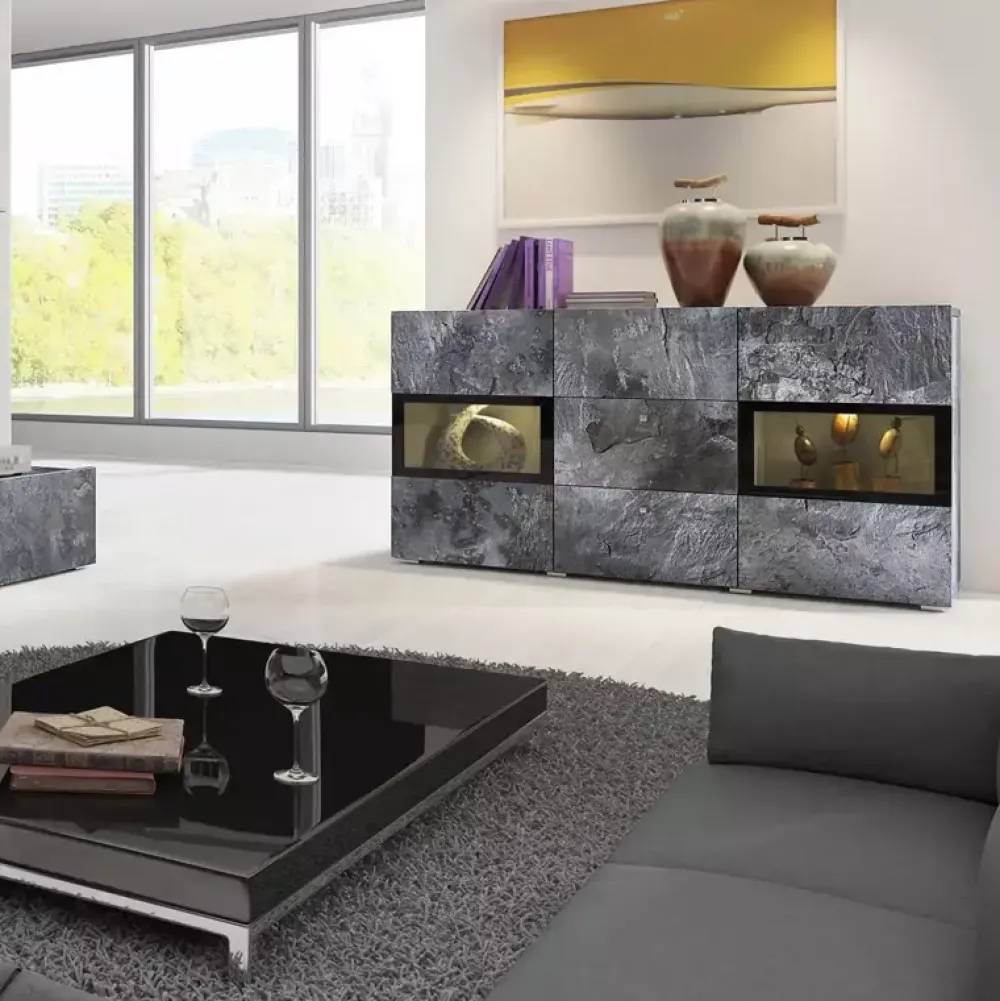 Kolekcja BARRET to meble do salonu o wyjątkowo nowoczesnej stylistyce. Meblościanka z witrynami oraz półkami, komoda z oszklonymi drzwiczkami, stolik kawowy czy dodatkowo dostępne szafki rtv, pozwolą skomponować nowoczesny salon, który przykuje uwagę każdego. Meble BARRET wykonano z dbałością o szczegóły, co przekłada się na jakość ich użytkowania. Mnogość kolorów to z pewnością mocna strona tej kolekcji. Kolory takie jak dąb Artisan w połączeniu z czarnym czy dąb San Remo jasny są świetną propozycją dla rustykalnych aranżacji wnętrz, natomiast elementy w kolorach betonu jasnego oraz ciemnego to meble w stylu industrialnym. Nie zabrakło również białego połysku, który jest ponadczasowy i często wybierany przez wielu użytkowników. Przy takim zestawieniu brył i kolorów każdy znajdzie w tej kolekcji coś dla siebie, a meble podkreślą nowoczesny wygląd każdego wystroju.