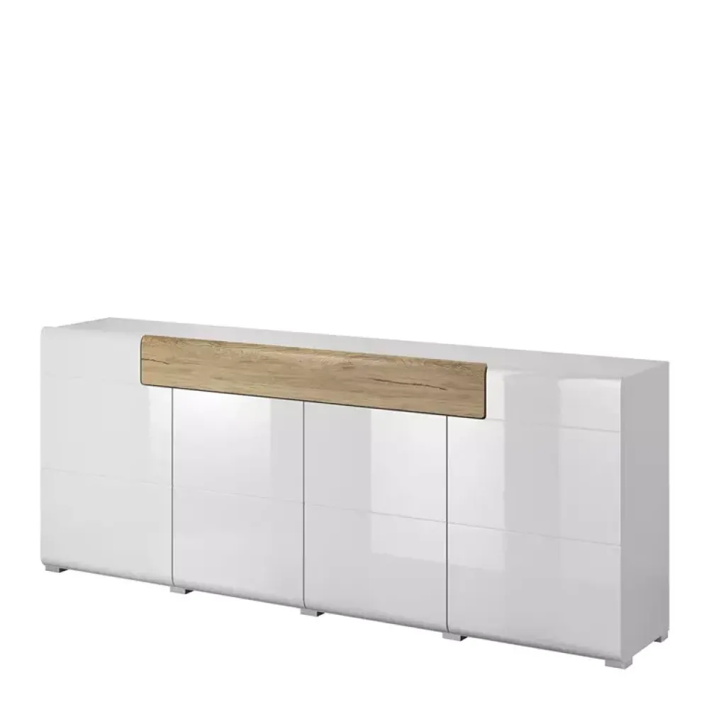 - Komoda do salonu o szerokości 208 cm z drzwiami uchylnymi oraz szufladą.