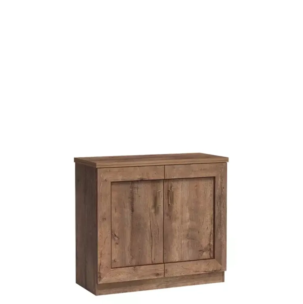 - Korpus oraz front komody wykonano z solidnej płyty laminowanej.