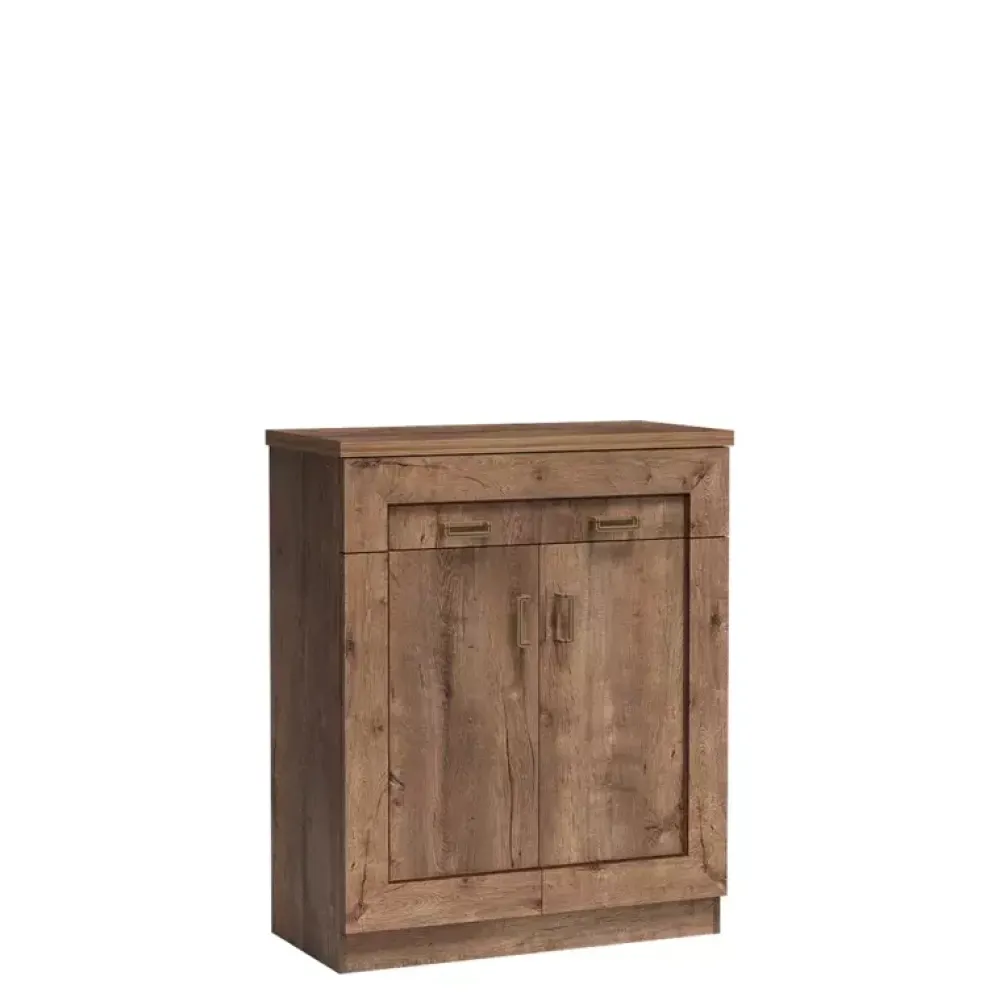 Komoda TAVIER jest propozycją, którą wykonano w klasycznej stylistyce, dzięki czemu nadaje pomieszczeniu eleganckich akcentów. Komoda została wyposażona w parę drzwi, za którymi znajduje się półka, natomiast nad drzwiami znajduje się pojemna szuflada. Dodatkowo komoda posiada stylowe uchwyty w formie postarzanego złota.