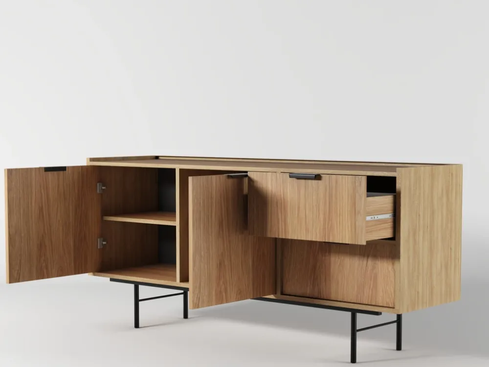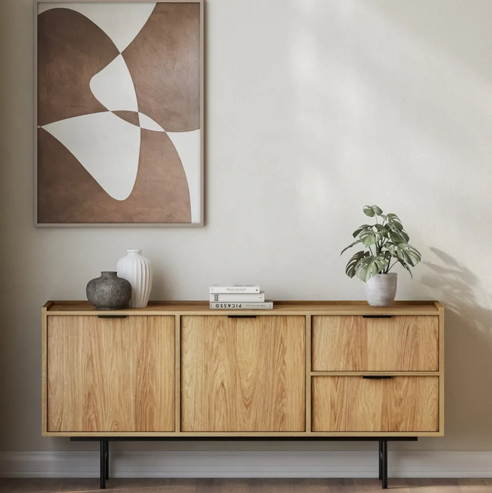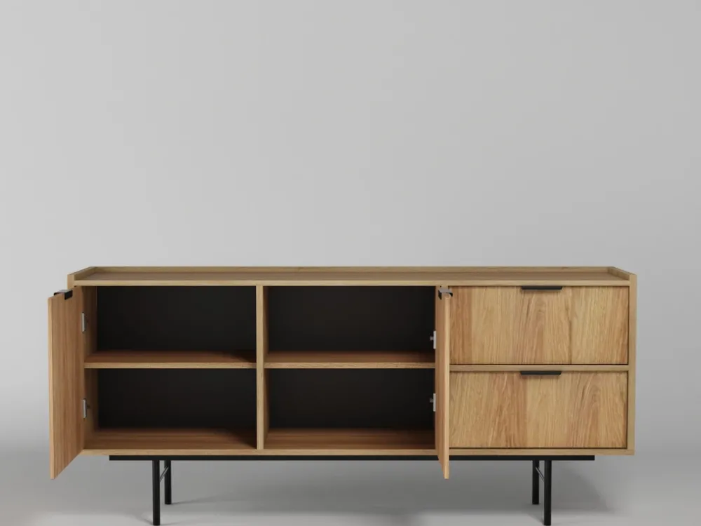 Komoda do salonu ELVIO – jasna elegancja i praktyczny układ w naturalnym kolorze hikory