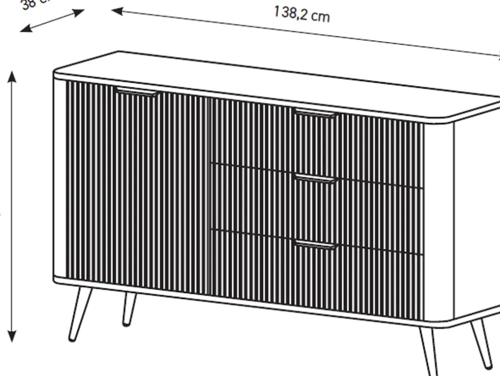 - Wymiary: szerokość 138 cm, wysokość 81 cm, głębokość 38 cm
