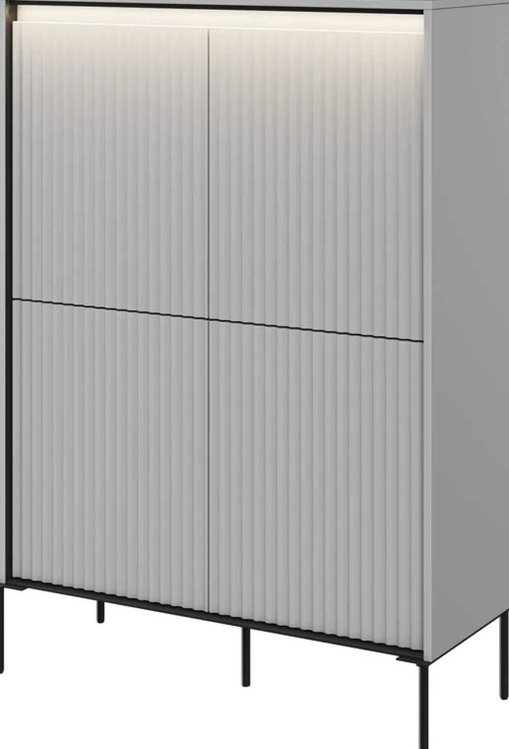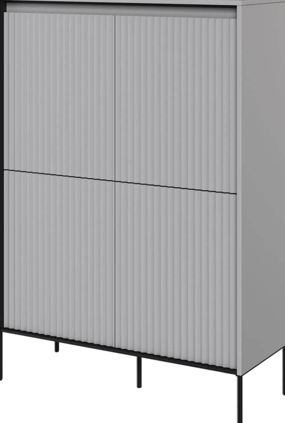 Podkreśl minimalizm i elegancję swojego wnętrza, dzięki naszej czterodrzwiowej komodzie TREND w subtelnym, szarym odcieniu. Precyzyjnie frezowane fronty, ze wzorem półkola, dodają komodzie unikalnej głębi i charakteru, wprowadzając do Twojego domu, współczesny i nowoczesny akcent.