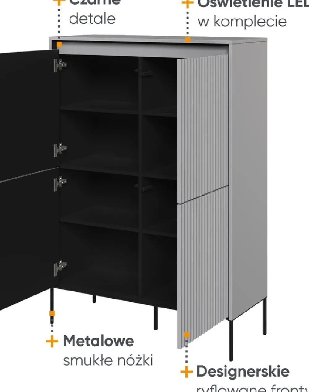 Ta czterodrzwiowa komoda z frezowanymi frontami to więcej niż mebel – to manifest nowoczesnej estetyki i funkcjonalności. Doda ona Twojemu wnętrzu wyrafinowanego, nowoczesnego charakteru, podkreślając jego unikalny styl.