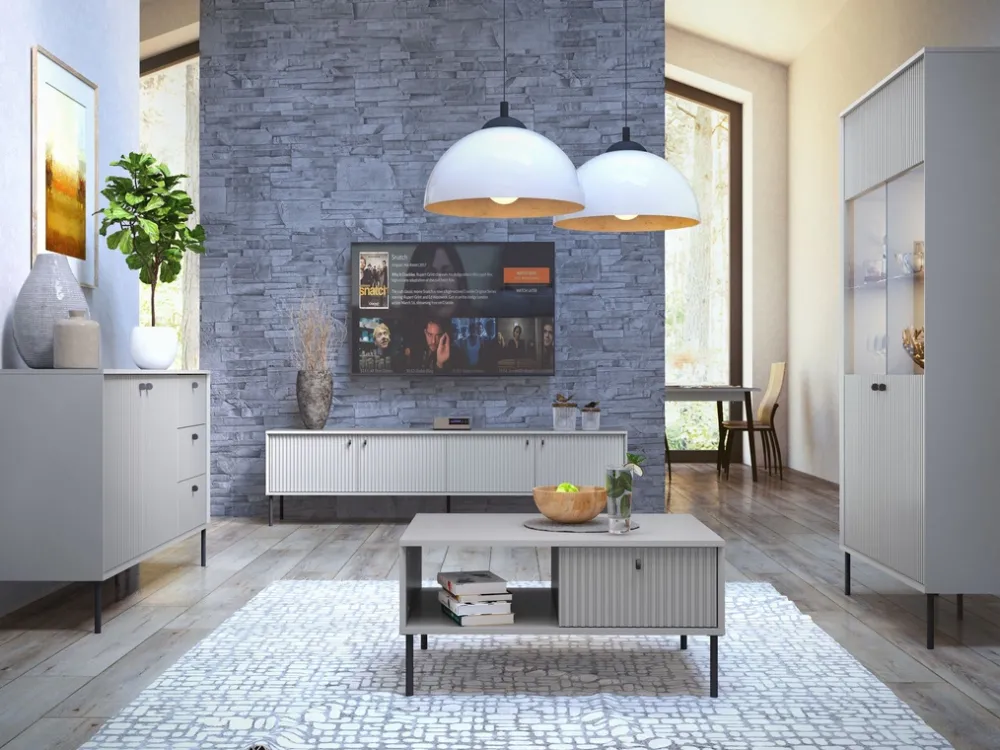 Komoda IRYS świetnie sprawdzi się jako mebel do salonu, sypialni czy przedpokoju. Jej kompaktowa szerokość 105 cm pozwala na ustawienie jej nawet w mniejszych przestrzeniach, a przy tym zapewnia sporo miejsca do przechowywania. Dzięki ryflowanym frontom i nowoczesnym uchwytom będzie nie tylko praktycznym, ale też dekoracyjnym elementem wnętrza.
