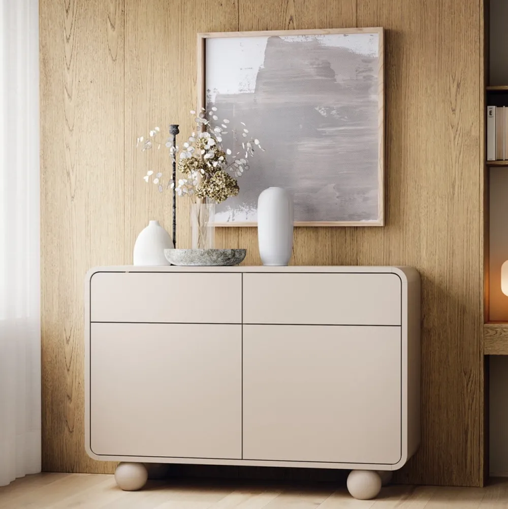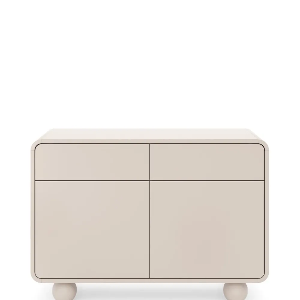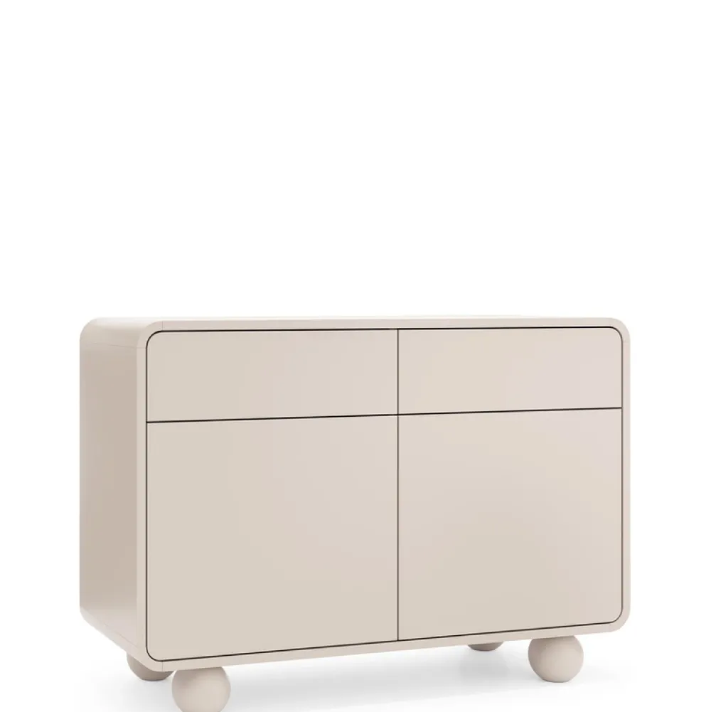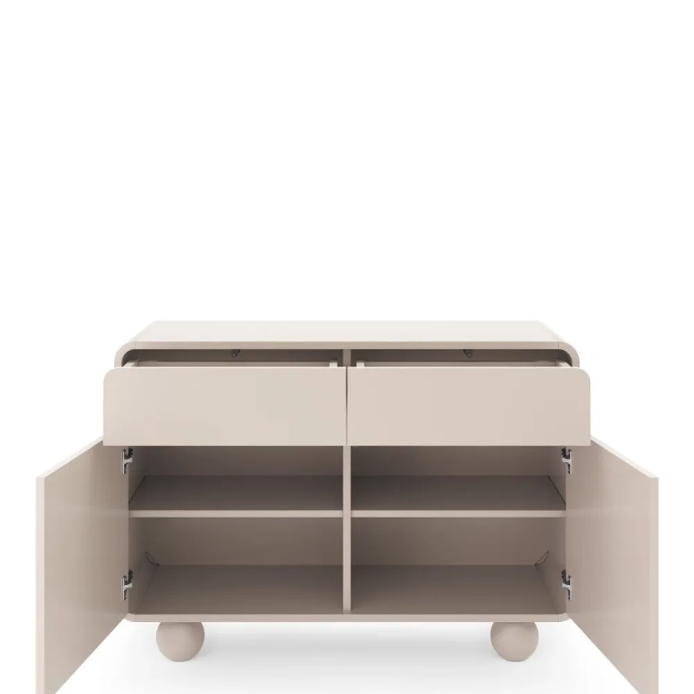 Komoda AVELON to kwintesencja nowoczesnego wzornictwa połączonego z praktycznym podejściem do przechowywania. Jej geometryczna bryła z zaoblonymi krawędziami, kuliste nóżki i system push-to-open sprawiają, że świetnie odnajdzie się zarówno w eleganckim salonie, jak i funkcjonalnym przedpokoju. Idealna dla tych, którzy cenią subtelny design i porządek na co dzień.