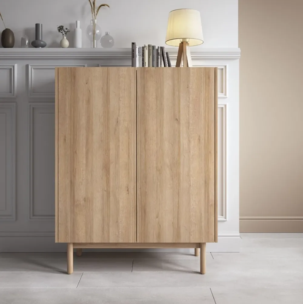 Eleganckie, wysokie drewniane nóżki zapewniają solidność całej konstrukcji, oraz dodają komodzie do salonu wdzięku i lekkości. Nóżki ułatwią również sprzątanie pod meblem.