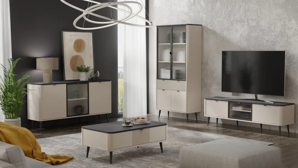 ✅ Ryflowana wstawka z MDF – designerski detal, który wyróżnia mebel