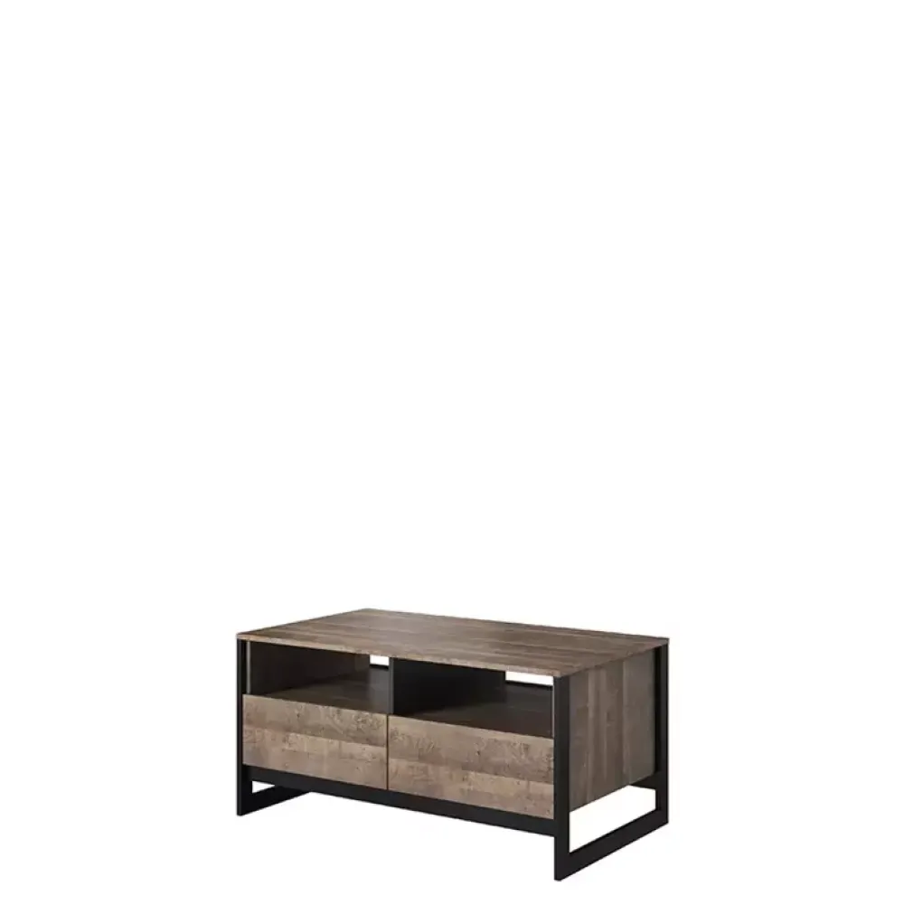 - Stolik kawowy z dwoma szufladami i dwoma półkami pod blatem. Ława ma blat prostokątny o wymiarach 108,6×61,4 cm.