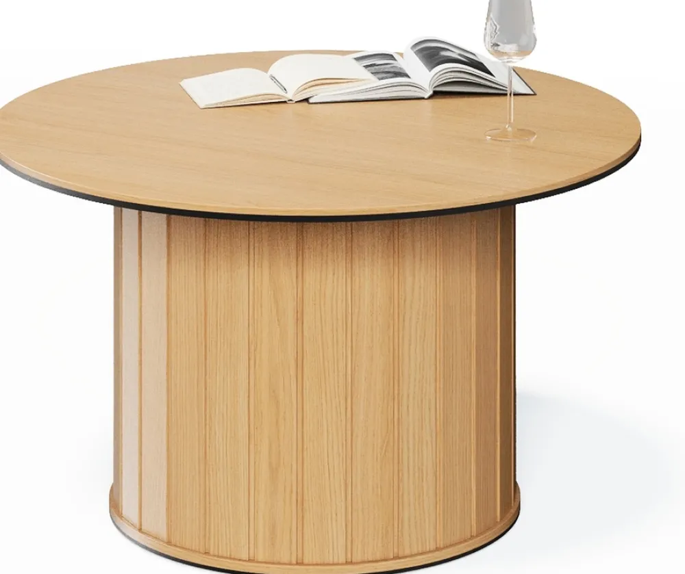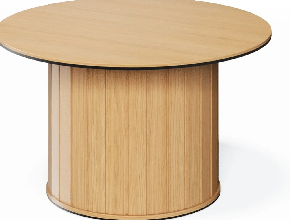 Stolik kawowy okrągły jest utrzymany w ciepłym odcieniu dębu vicenza, który nadaje mu naturalnego i przytulnego charakteru. Krawędzie stolika zostały zabezpieczone wytrzymałą okleiną ABS, co zwiększa jego trwałość i odporność na codzienne użytkowanie. ROTTO to idealne rozwiązanie zarówno do nowoczesnych, jak i klasycznych wnętrz, gdzie stanie się centralnym punktem salonu.