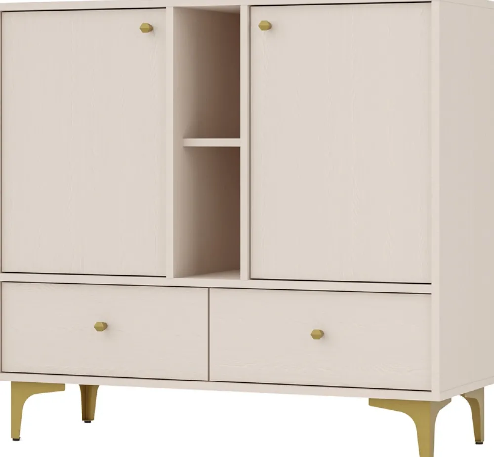 - Komody posiadają po jednej półce za każdymi drzwiami.