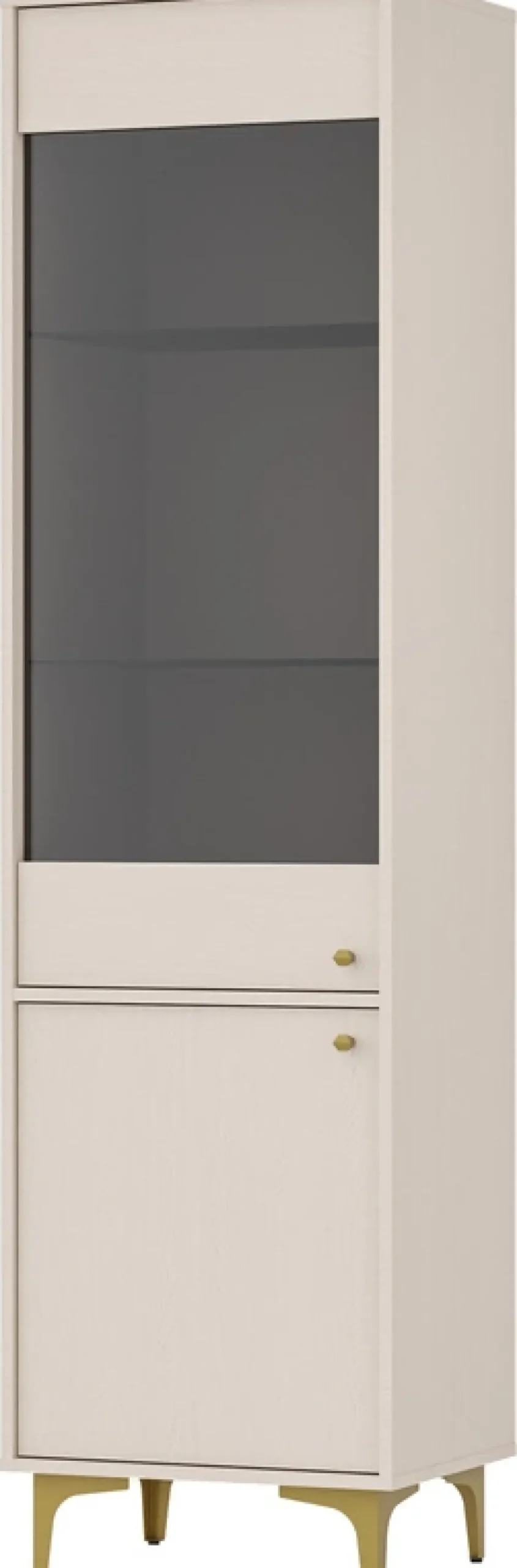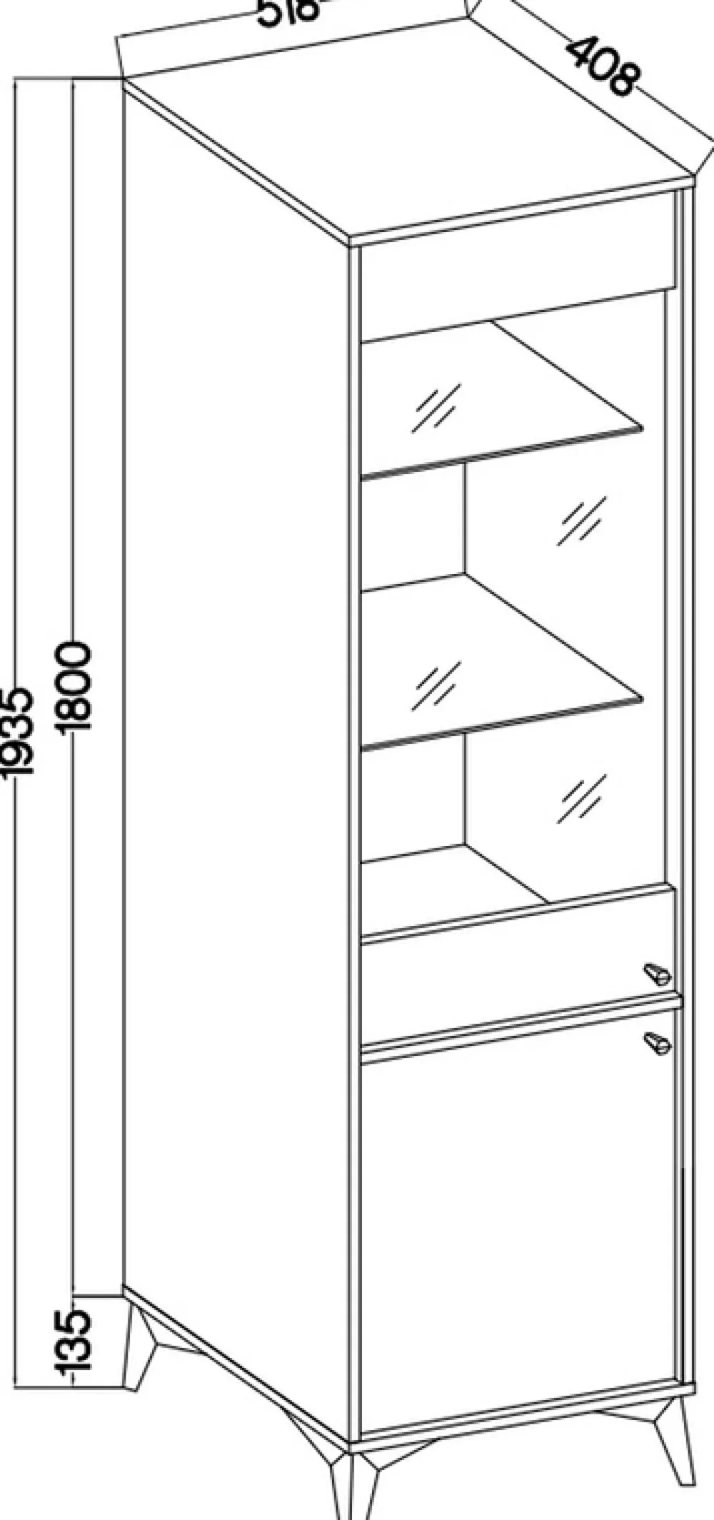 - Witryna posiada dwie półki za pełnymi drzwiami oraz dwie szklane za szybą.
