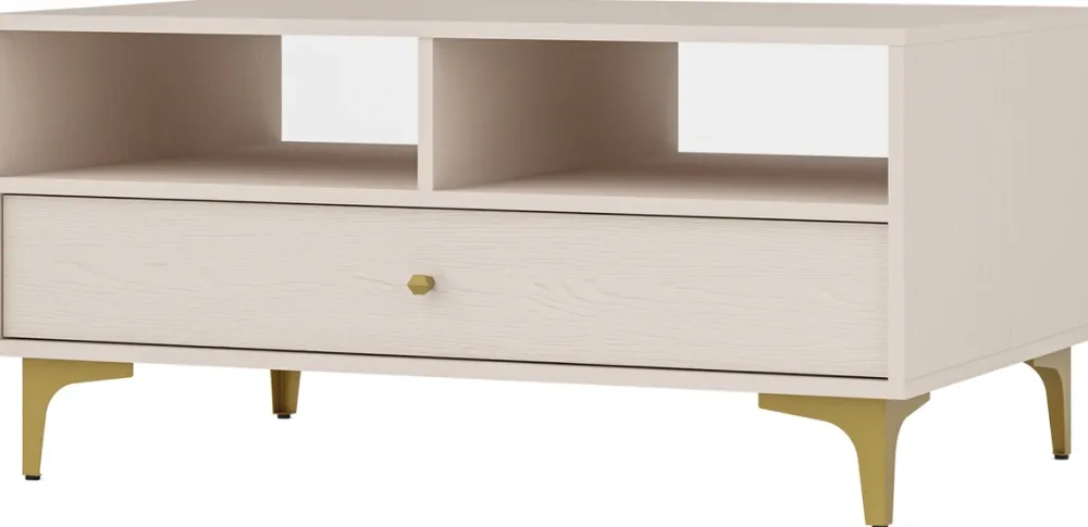 Stolik kawowy z praktyczną szufladą to doskonałe uzupełnienie zestawu mebli do salonu. Jego elegancki design i funkcjonalność sprawią, że stanie się centralnym punktem każdego spotkania. Szuflada osadzona na prowadnicach kulkowych umożliwia przechowywanie drobiazgów, a wykończenie obrzeży okleiną ABS oraz metalowe nóżki i uchwyty podkreślają nowoczesny charakter mebla.