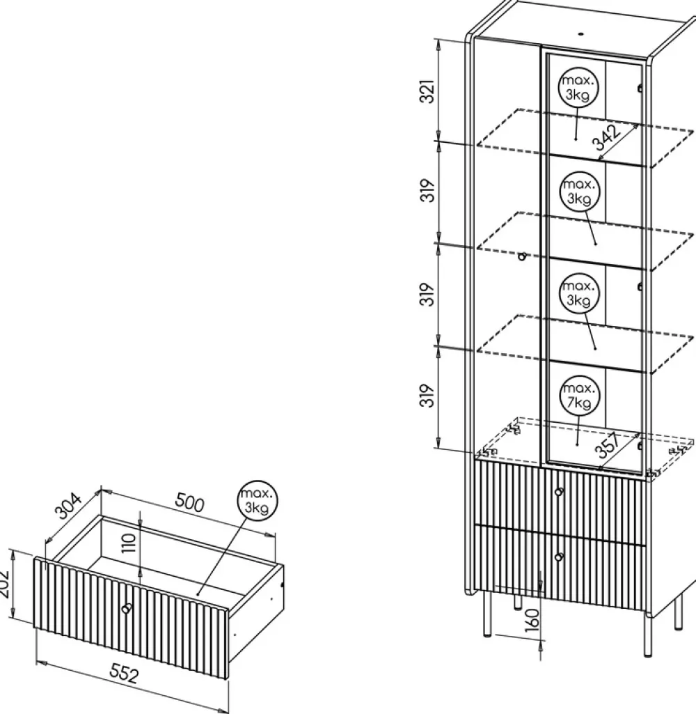 - Front ryflowany wykonany jest z płyty MDF o wybarwieniu czarny mat.