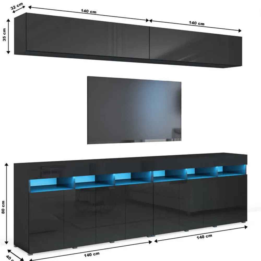 - Zestaw mebli o łącznej szerokości 280 cm