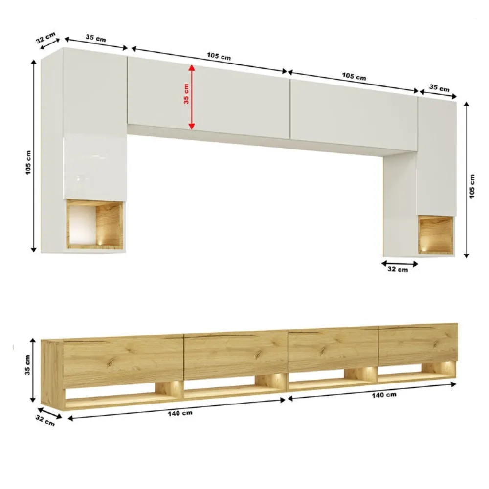 - Zestaw mebli o łącznej szerokości 280 cm