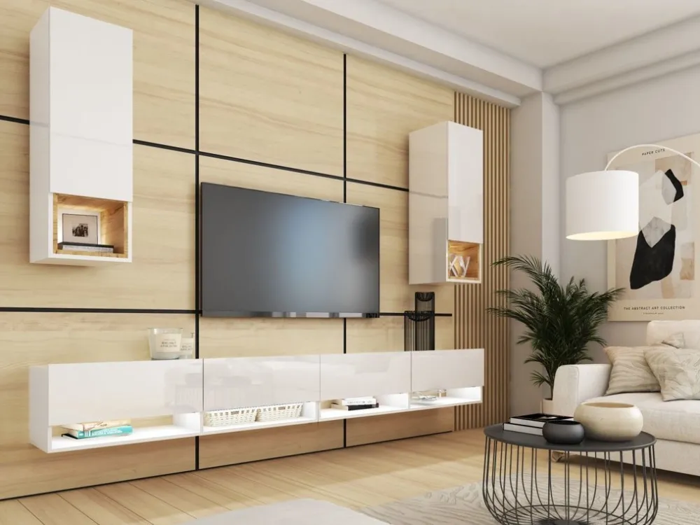 - fronty szafek RTV: płyta laminowana o wykończeniu połyskowym,
