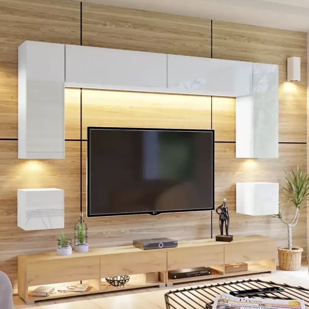 - Nowoczesne meble do salonu o łącznej szerokości 280 cm
