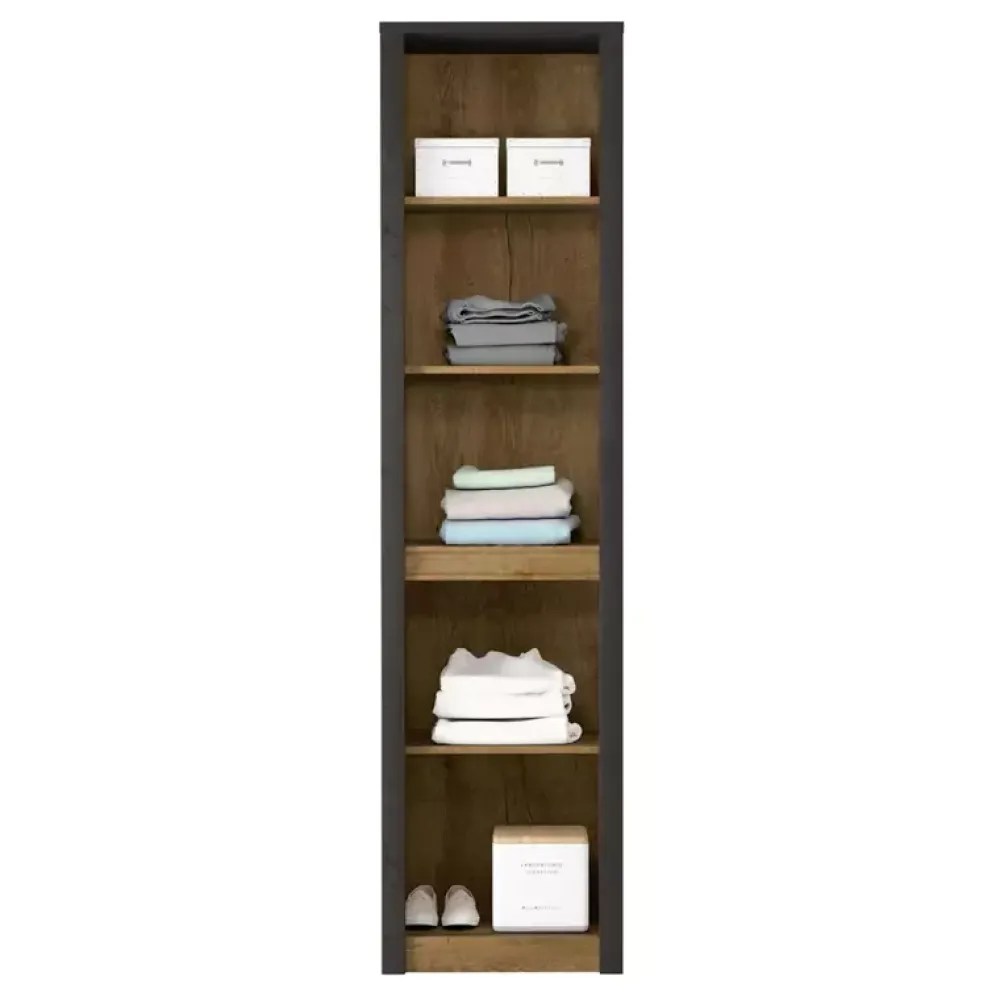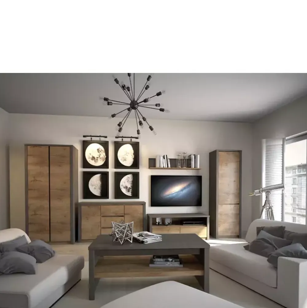 Meblościanka MERIZO to kompletna propozycja wykonana w nowoczesnym stylu oraz ponadczasowym kolorze, która uczyni twój salon wyjątkowym oraz niepowtarzalnym. W skład meblościanki wchodzą praktyczne oraz pojemne bryły pozwalające przechować znaczną część garderoby oraz najpotrzebniejsze rzeczy i akcesoria. W meblościance swoje miejsce znalazły dwie pojemne szafy oraz praktyczna komoda z trzema szufladami w swojej centralnej części oraz drzwiami po lewej i prawej stornie, za którymi znajdują się półki. Dodatkowo w zestawie znajduje się szafka RTV z dwiema szufladami oraz stolik kawowy i uzupełniająca ścianę półka na książki.