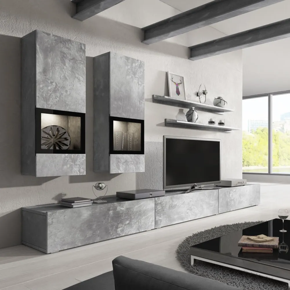 - Zestaw mebli do salonu o szerokości 270 cm składający się z dwóch witryn, dwóch półek oraz szafki RTV