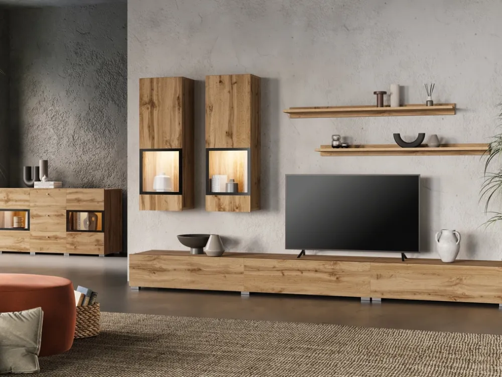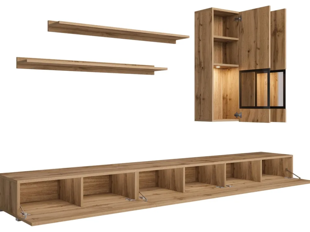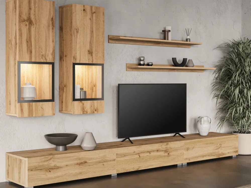 Zamów meblościankę BARRET w kolorze dąb wotan już dziś i stwórz salon pełen stylu, harmonii i funkcjonalnych rozwiązań!