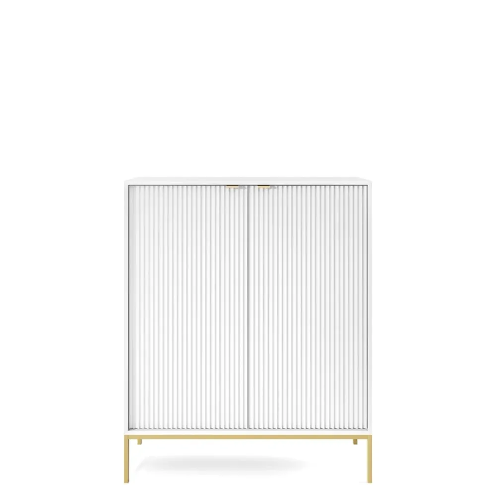 - Ekskluzywny komplet mebli AVANTI glamour – trzy komody, szafka RTV i stolik kawowy. Białe, ryflowane fronty MDF i złote nogi tworzą harmonijną całość. Twój dom zasługuje na ten wyjątkowy, pełen blasku styl. Przekształć przestrzeń w królestwo elegancji!