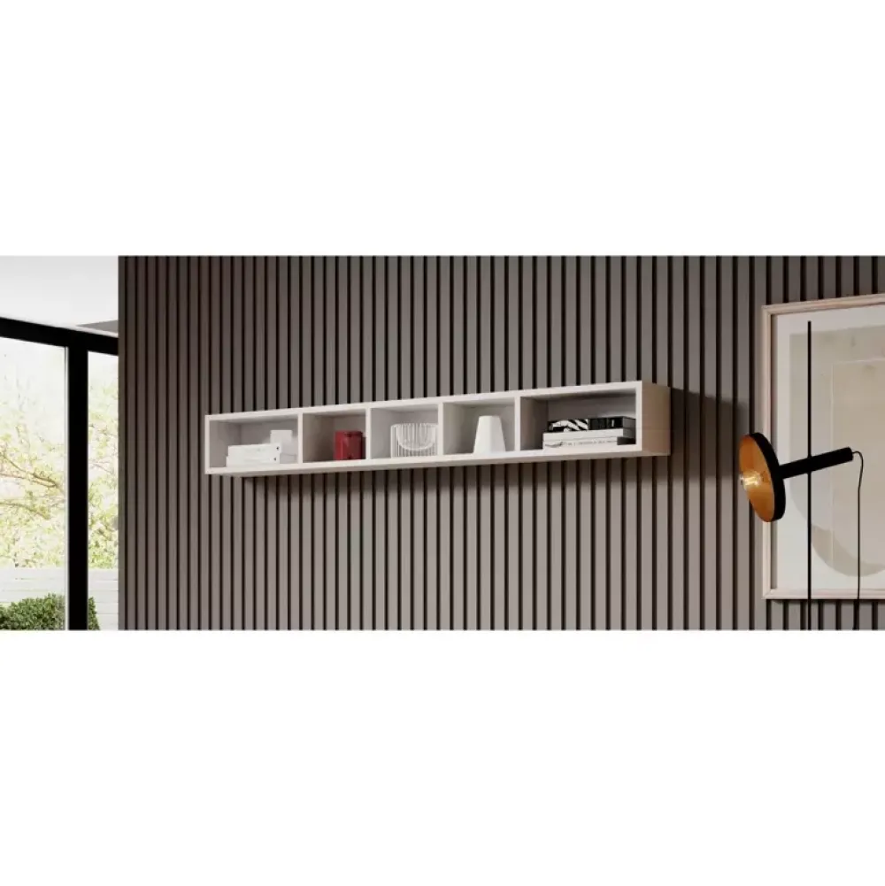 Nowoczesna półka wisząca o szerokości 169 cm z pięcioma przegrodami.