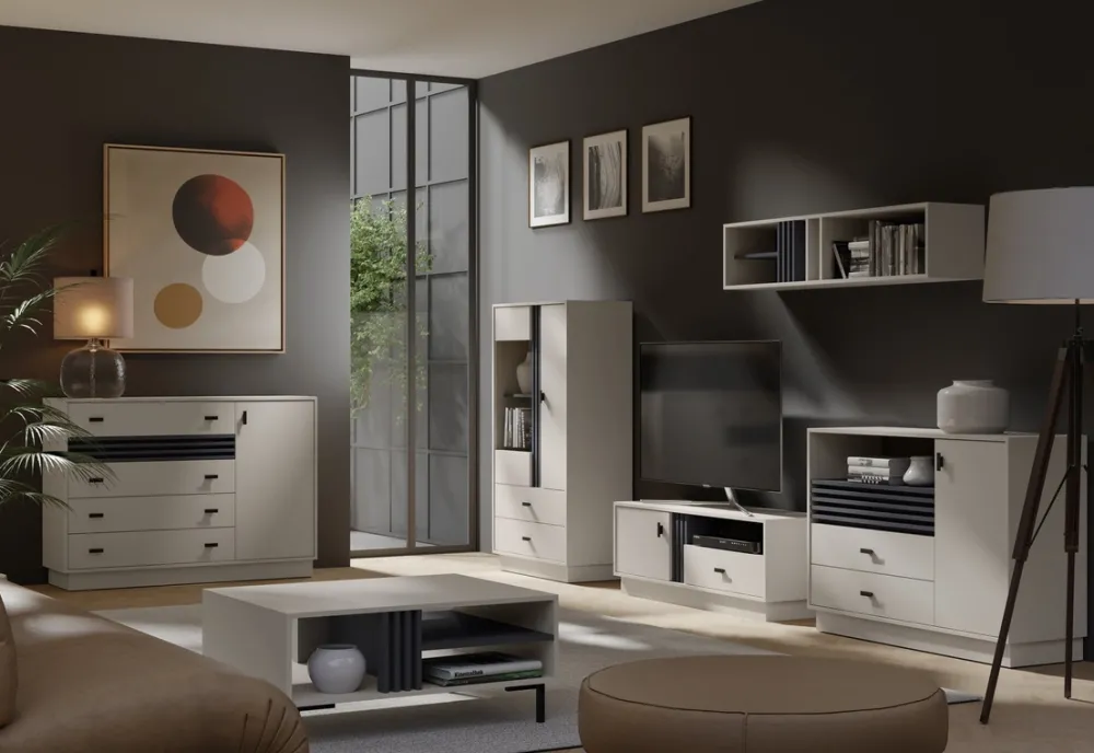 - Kolor kaszmir + lamele antracyt – elegancki kontrast o nowoczesnym charakterze