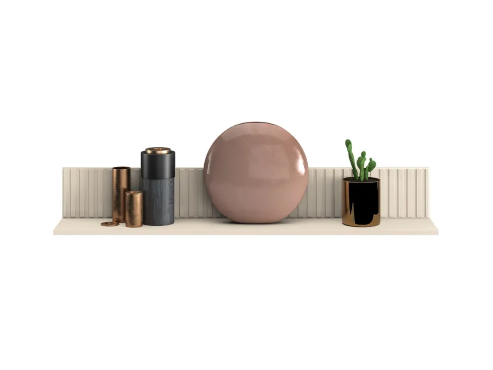 Półka urzeka subtelnym odcieniem cashmere, który wnosi do pomieszczenia ciepło i elegancję. Ten uniwersalny kolor świetnie komponuje się zarówno z jasnymi, jak i ciemnymi aranżacjami wnętrz, dodając im niepowtarzalnego charakteru.
