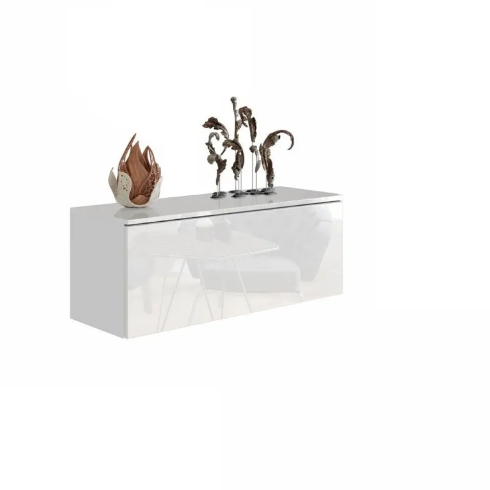 Podwieszana szafka RTV z możliwością postawienia, po dokupieniu stopek meblowych.