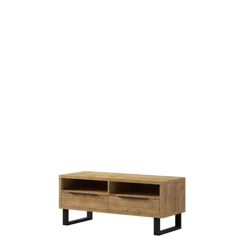 Szafka rtv loft wyposażona w dwie szuflady oraz półki.