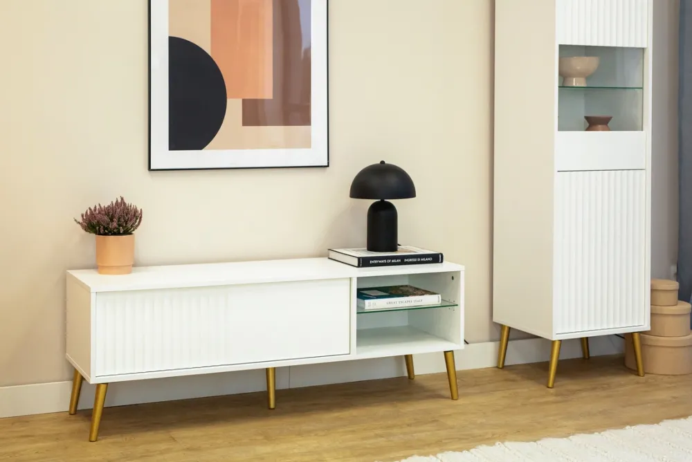Zastanawiasz się, czy szafka RTV z ryflowanym frontem pasuje do Twojego wnętrza? BELLUNO 135 cm udowadnia, że mebel może być jednocześnie praktyczny, elegancki i ponadczasowy.