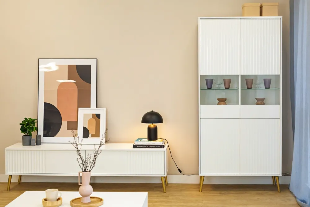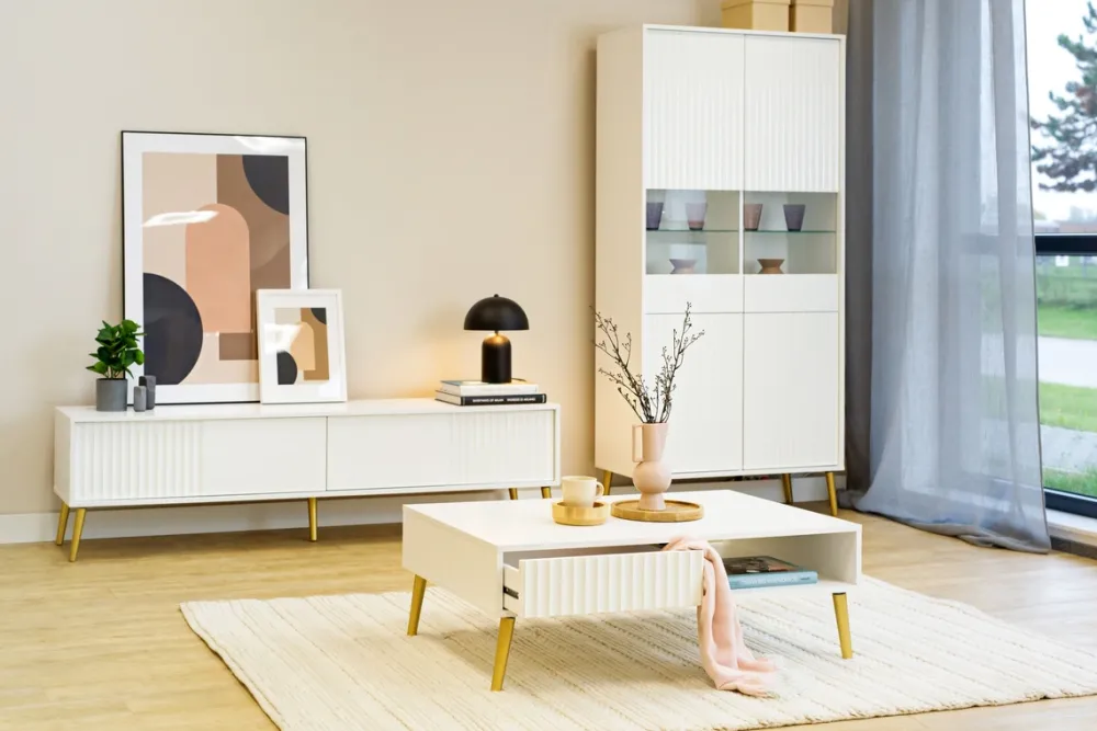 - Fronty z ryflowanego MDF – subtelny dekor, który dodaje meblowi głębi i wyrafinowania