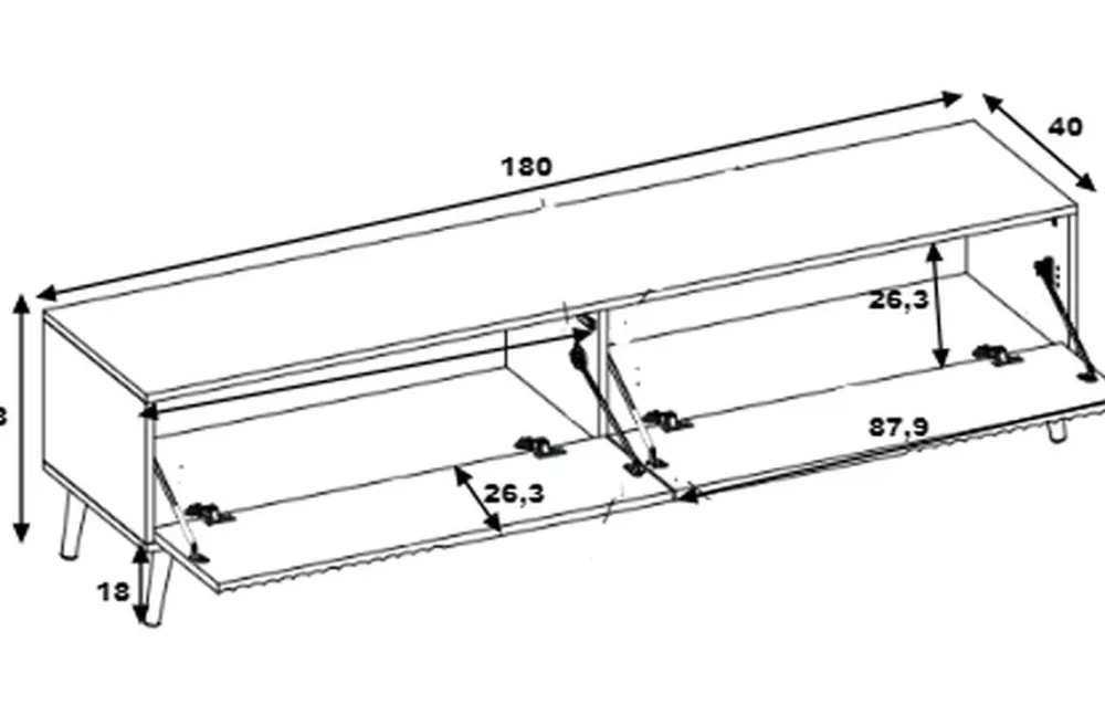 - Szafka RTV 180 cm BELLUNO posiada drzwi, za którymi można przechowywać rozmaite akcesoria i nie tylko. Wysokie nóżki pozwalają na swobodne odkurzanie pod powierzchnią mebla. Frezowane fronty wykonane z płyty MDF.