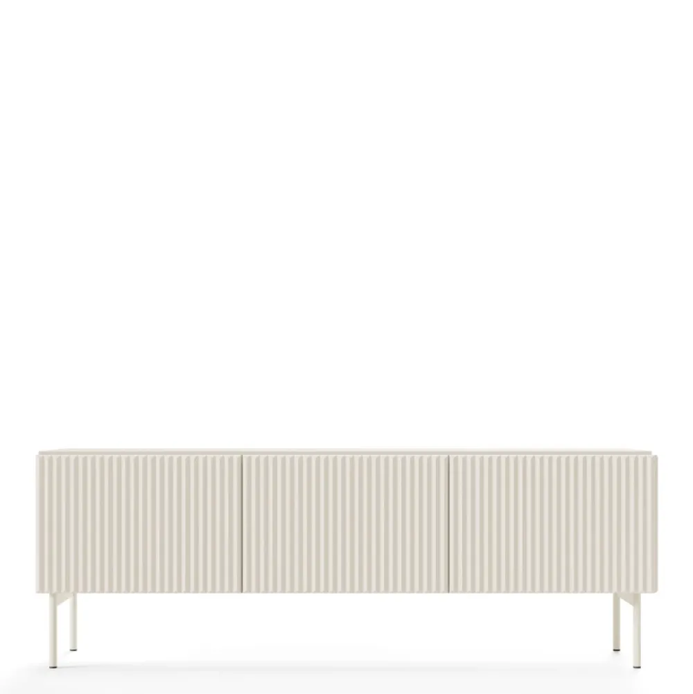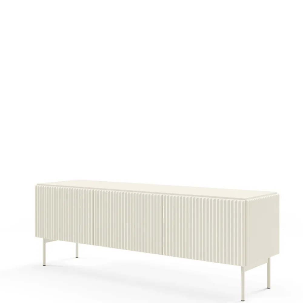 Szafka RTV ryflowana w kolorze kaszmir – elegancja i funkcjonalność w nowoczesnym wydaniu