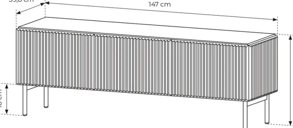- Wymiary: szerokość 147 cm, głębokość 39,8 cm, wysokość 51,2 cm (w tym nogi 18 cm)